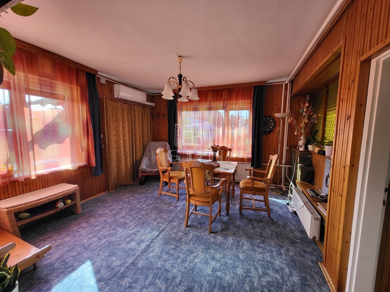 Az udvaron a ház folytatásában található a dupla garázs, kettő db tároló. Kertje szépen gondozott.