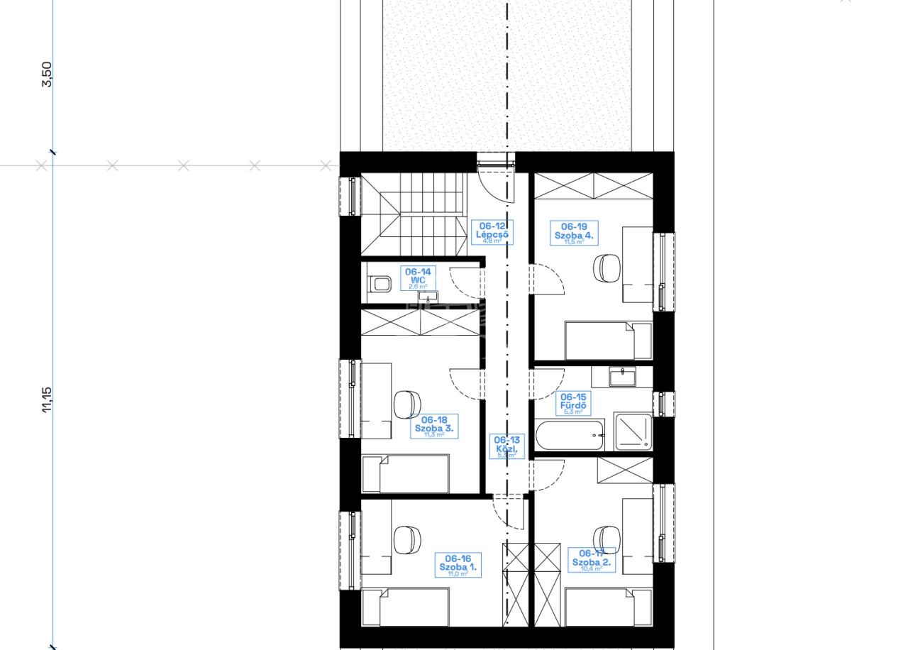 - 4 db kétszintes lakás garázzsal + terasszal + saját kertrésszel.