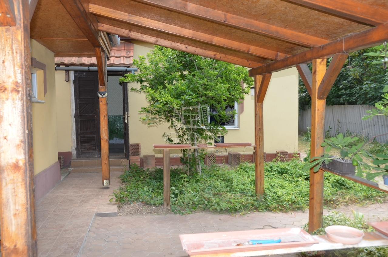 Az ingatlanhoz tartozik egy fedett, előtetős terasz térkő burkolattal, amely tökéletes helyszíne lehet családi vagy baráti összejöveteleknek.
