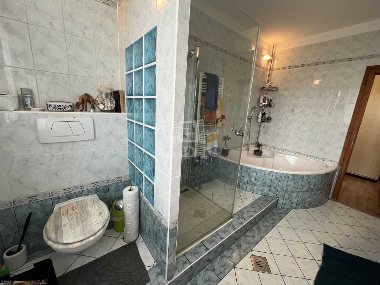 A fürdőszobában megtalálható a fürdőkád mellett egy zuhanyzó is, valamint egy WC. A nappaliban és az emeleten található egyik hálószobán klímaberendezés lett kiépítve a melegebb napokon a kellemesebb hőmérséklet kialakítása érdekében.