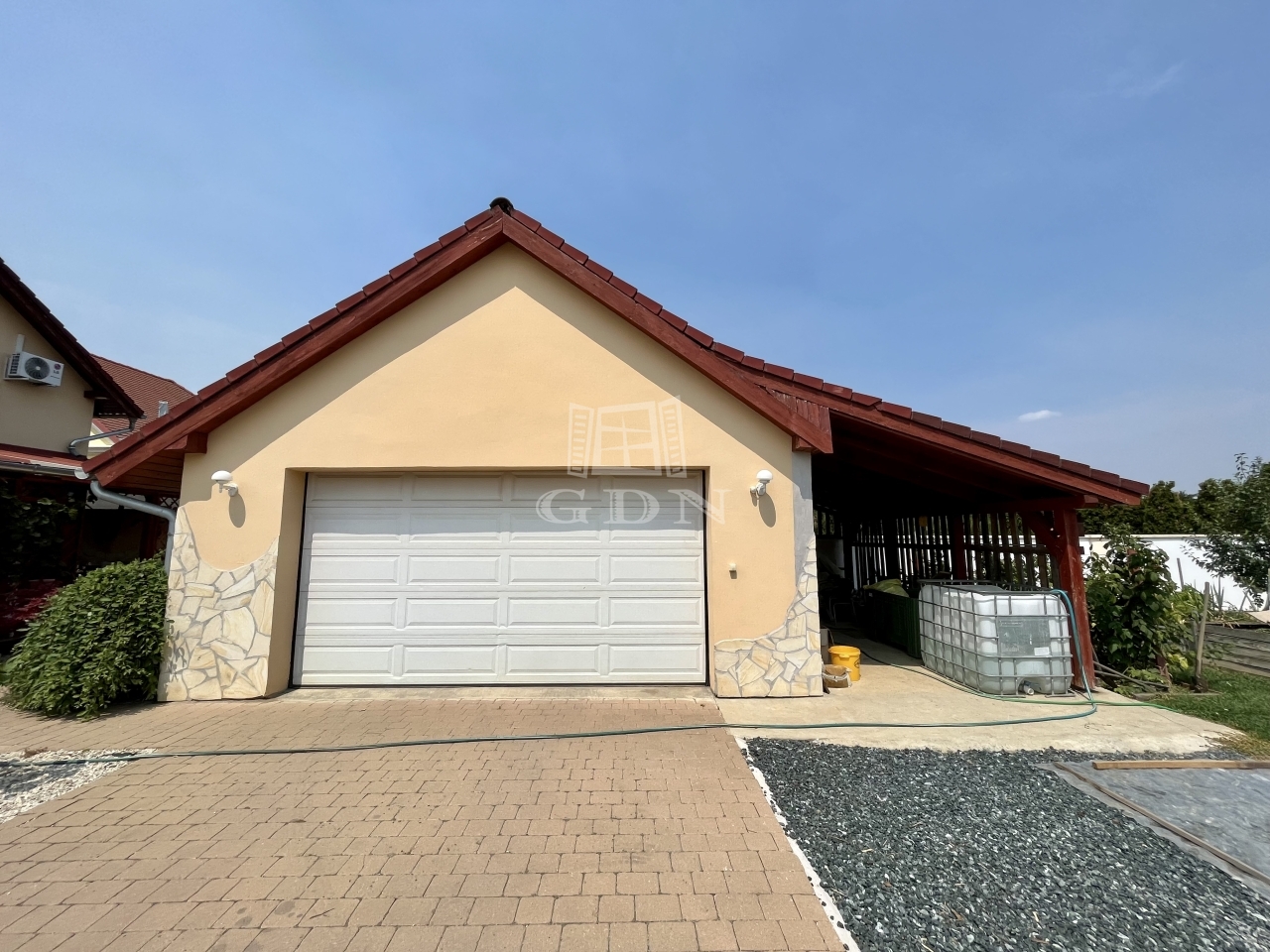 Az udvaron találhat egy fedett terasz, melyre a nappaliból jutunk ki, illetve mellette egy különálló 36 m2-es garázs is.