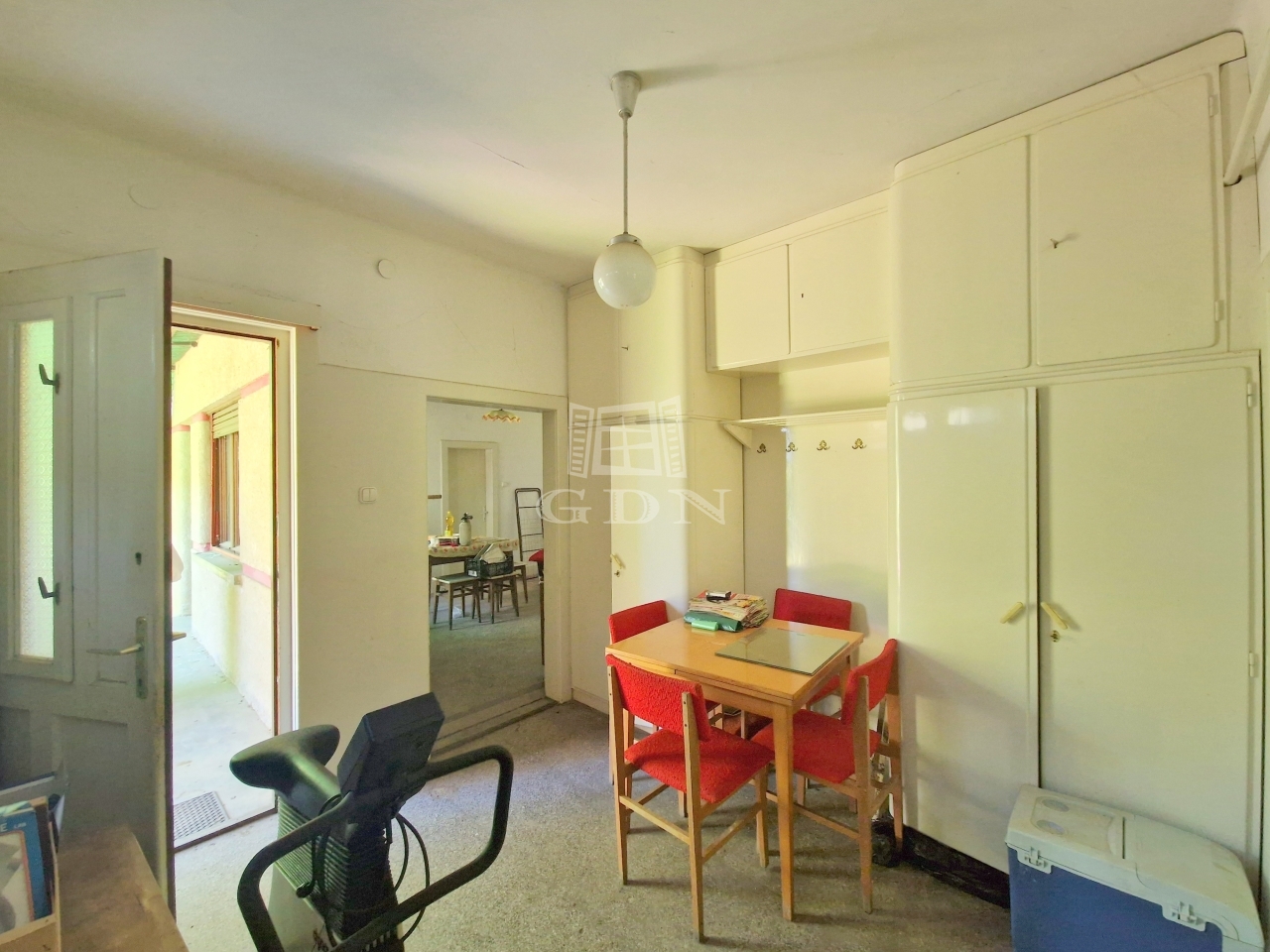 Az ingatlan jelenlegi elosztása kiváló, tágas terek formájában ad helyet egy terasznak, melyről a lakóépületbe és melléképületbe is eljutunk, egy előtérnek, egy konyha - étkezőnek, egy spejznek, egy fürdőkáddal felszerelt fürdőszobának, valamint kettő nagy méretű hálószobának.