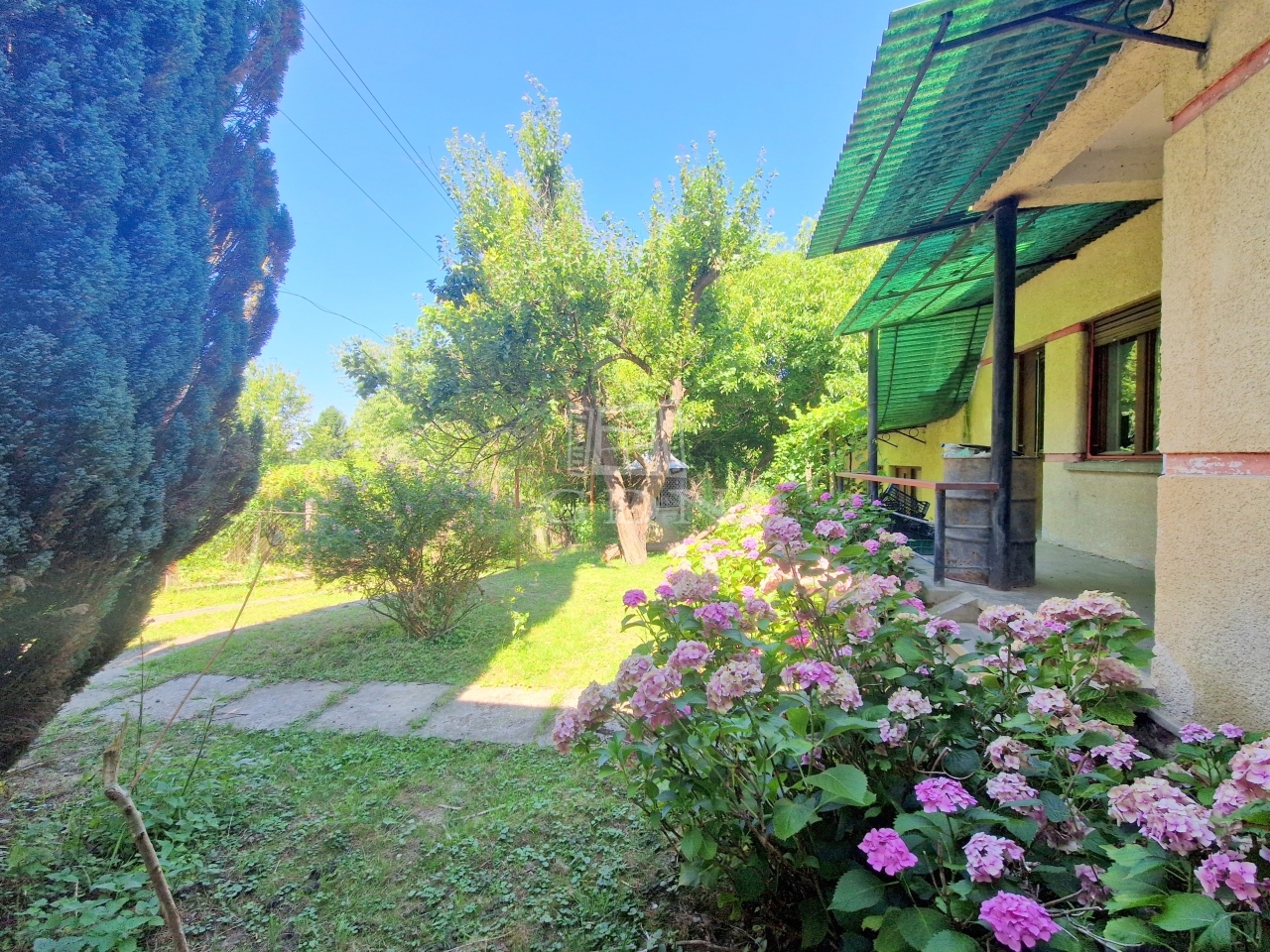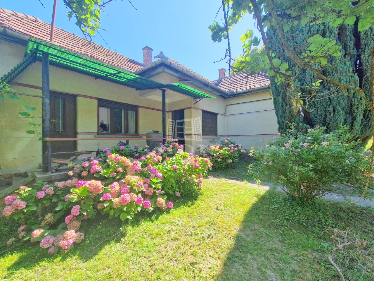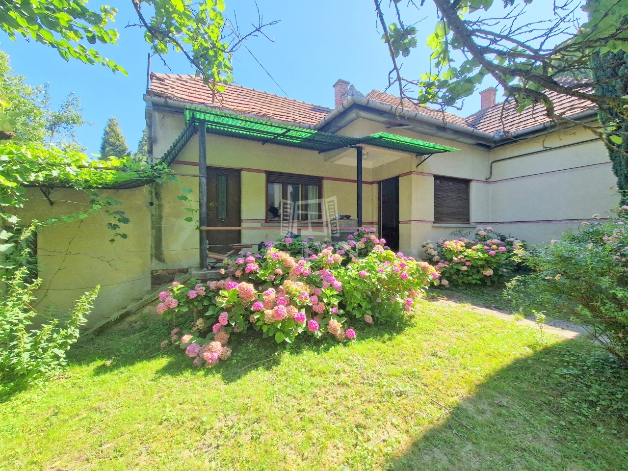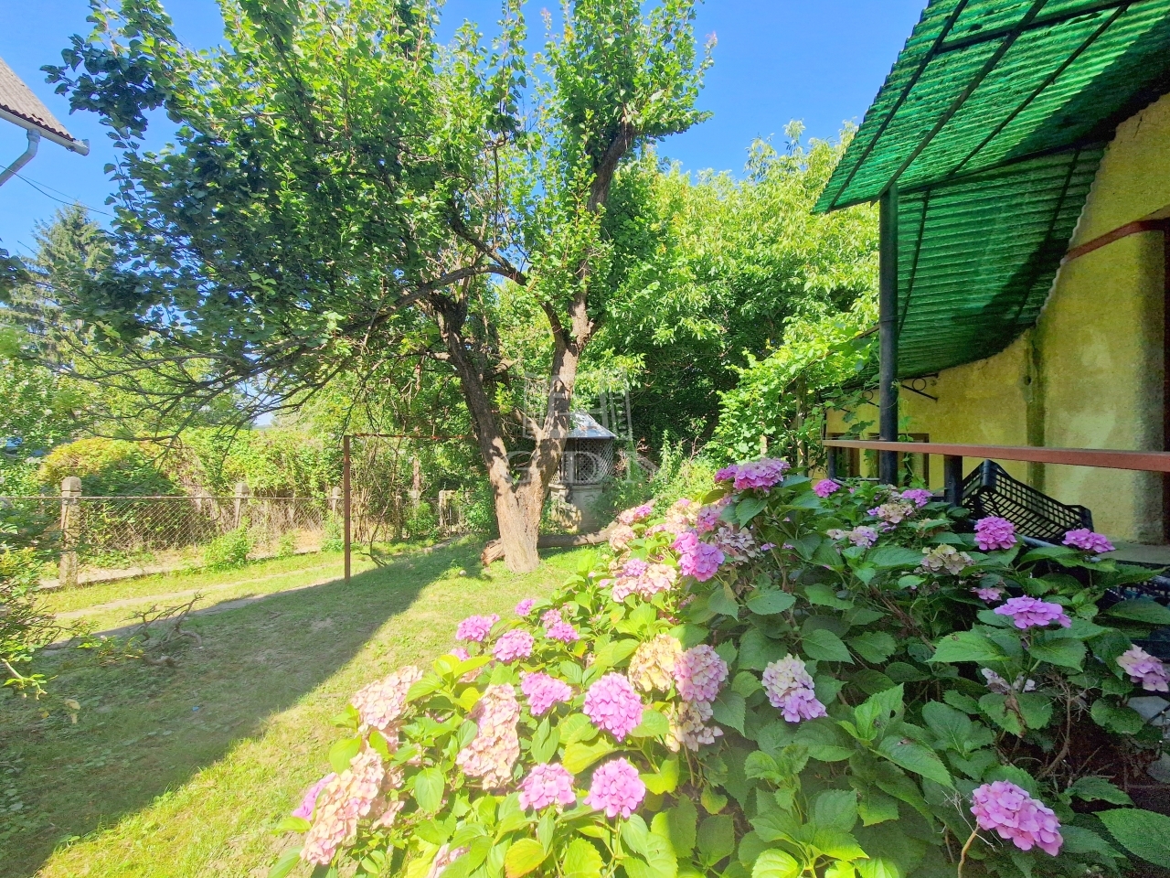 A családi ház egy 2128 m2 - es területen található, mely virágbokroknak, gyümölcsfáknak ad otthont.