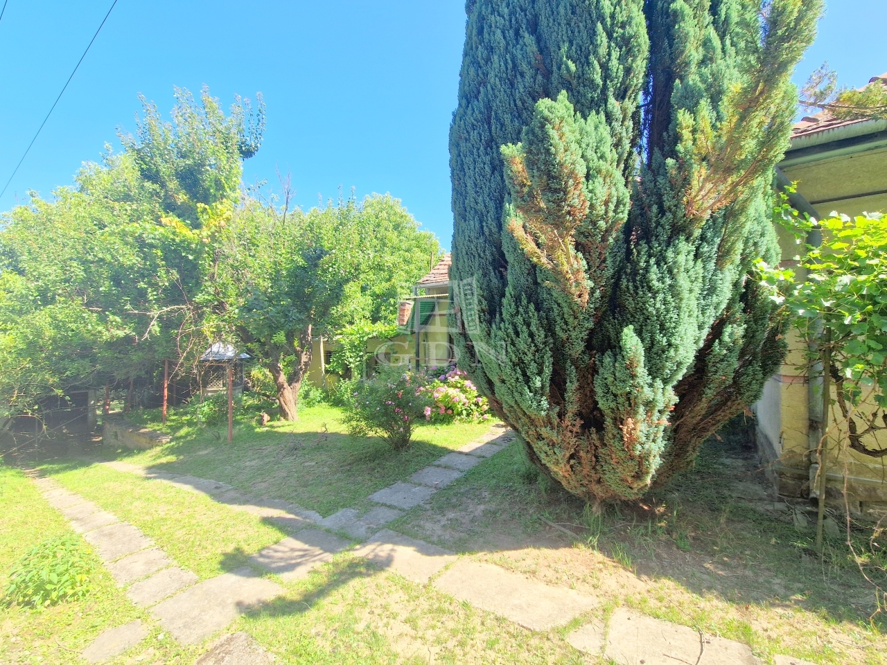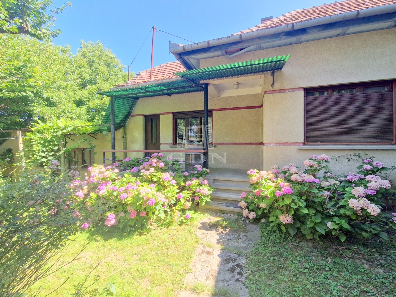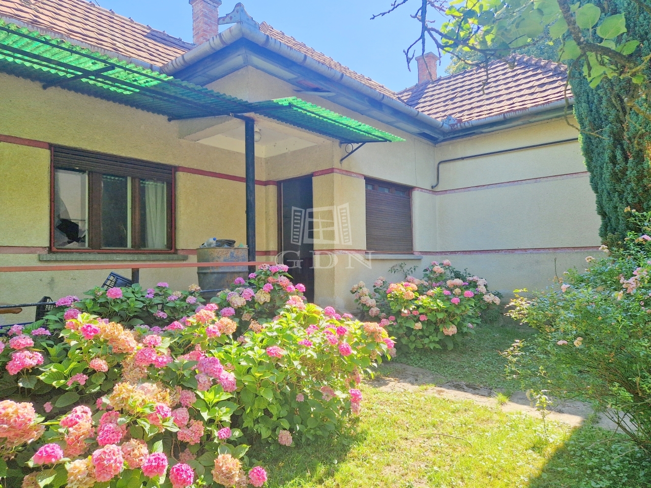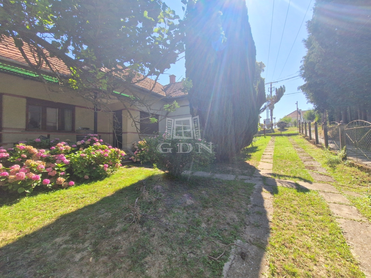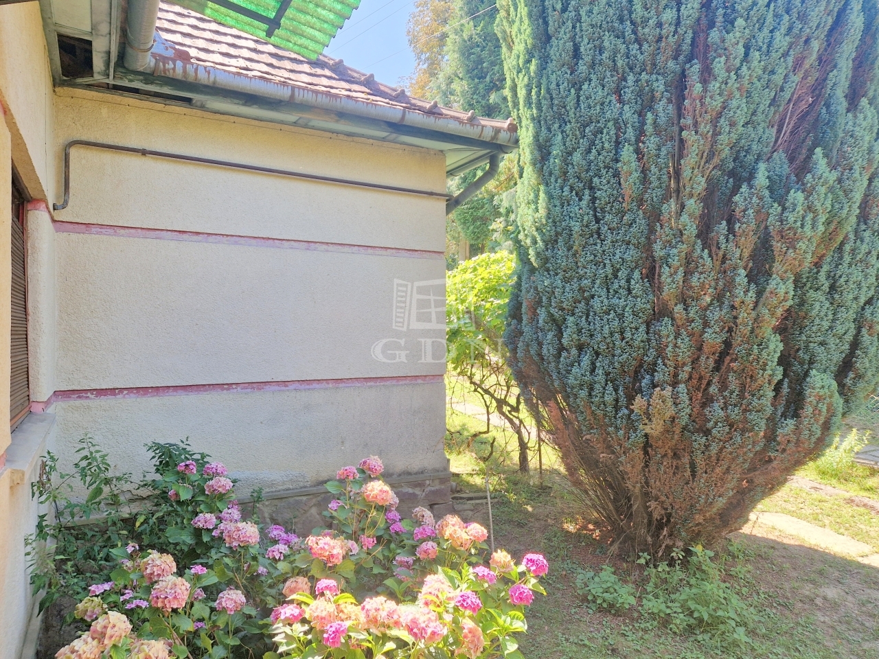 A családi ház egy 2128 m2 - es területen található, mely virágbokroknak, gyümölcsfáknak ad otthont.