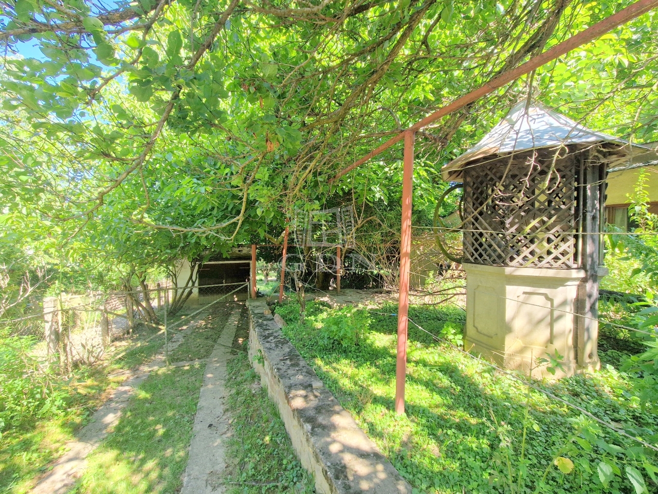 A körbekerített területen található egy fúrt kút, több melléképület, műhely, valamint egy különálló garázs is.
