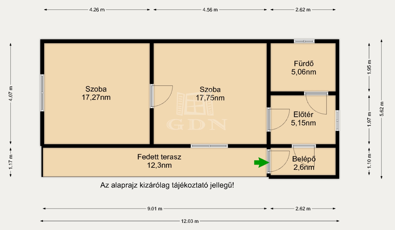 Koncektoros fűtés, villanybojler, 2 szoba, fürdő, előtér jellemzi.