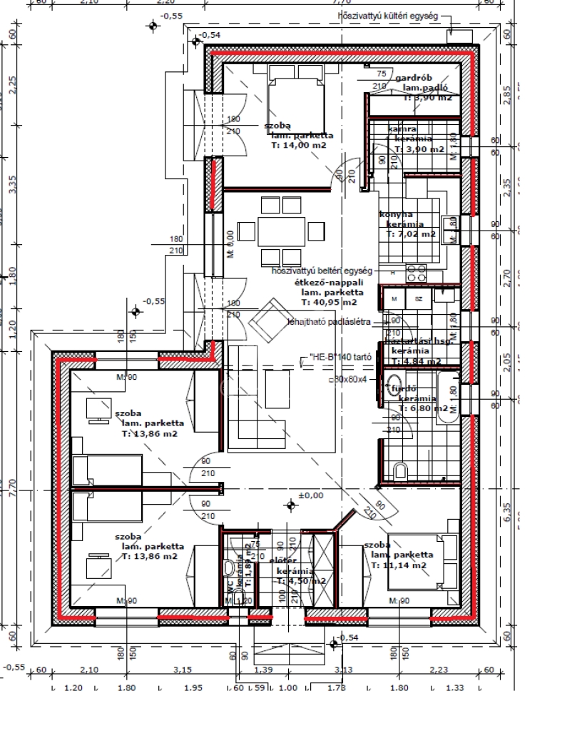 - Porotherm 30-as falazat, 20cm vastagságú hőszigeteléssel