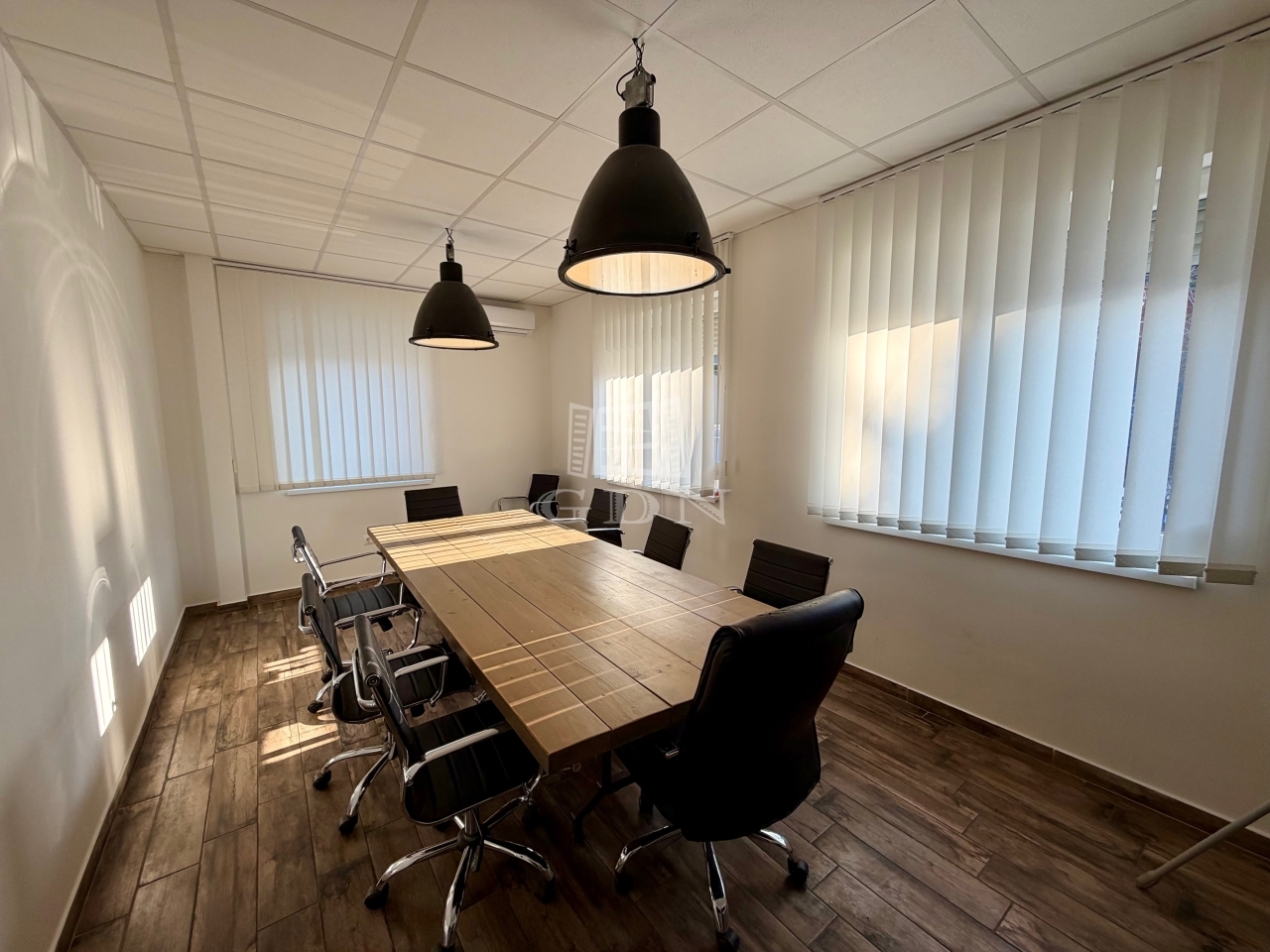 Az ingatlan kiépített szerves része a fent említett 240 m2 több helyiségből álló iroda, teakonyhával, vizesblokkal, öltözővel, amely padlófűtéssel, klímaberendezéssel rendelkezik.