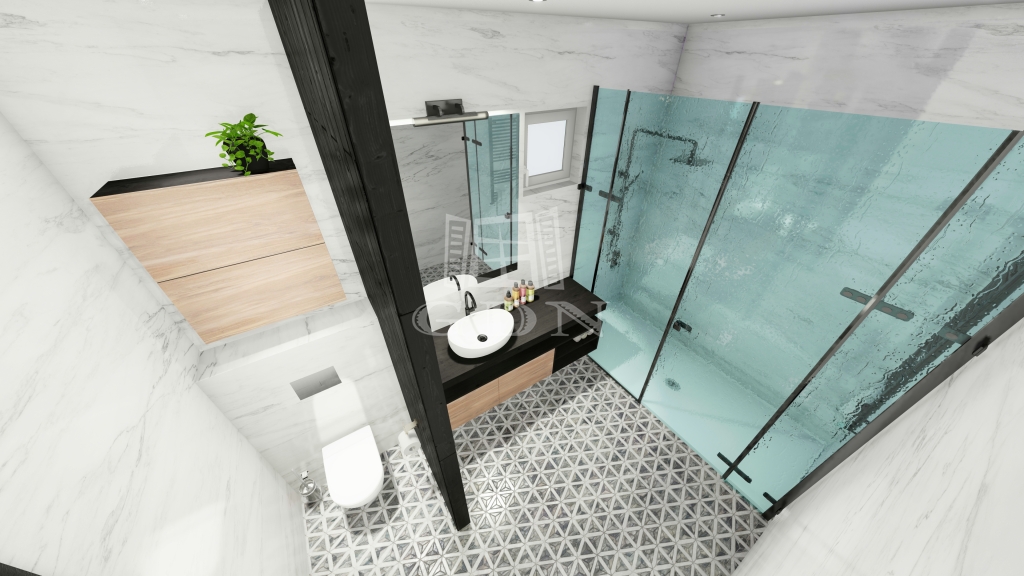 Az előtér, konyha, étkező, gardrób mázas greslappal burkolt, a fürdőszoba, mosókonyha, WC burkolata csúszásmentes greslappal lesz borítva.