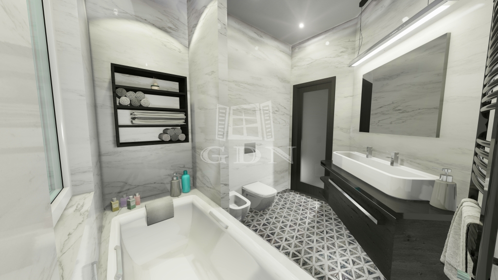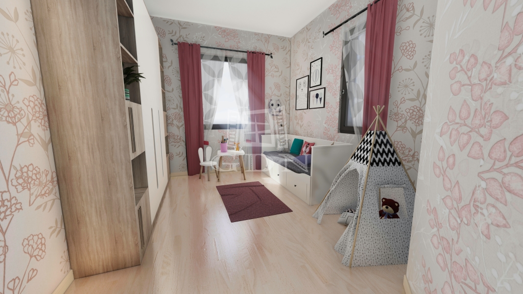 A lakószobák és konyha falburkolata glettelésre felhordott egyszínű diszperzites falfestés lesz.