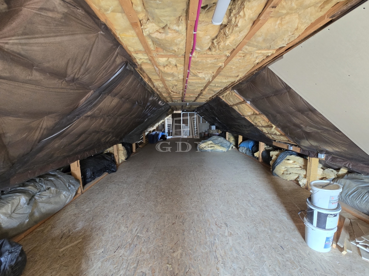 A külső falak 5 cm-es hőszigeteléssel látták el, míg a padlástér 50 cm vastag kőzeggyapot szigetelést kapott, így az épület energetikailag is megbízható. A tetőt új, Tondach cserépfedés borítja, amely a garázsra is egységesen került.