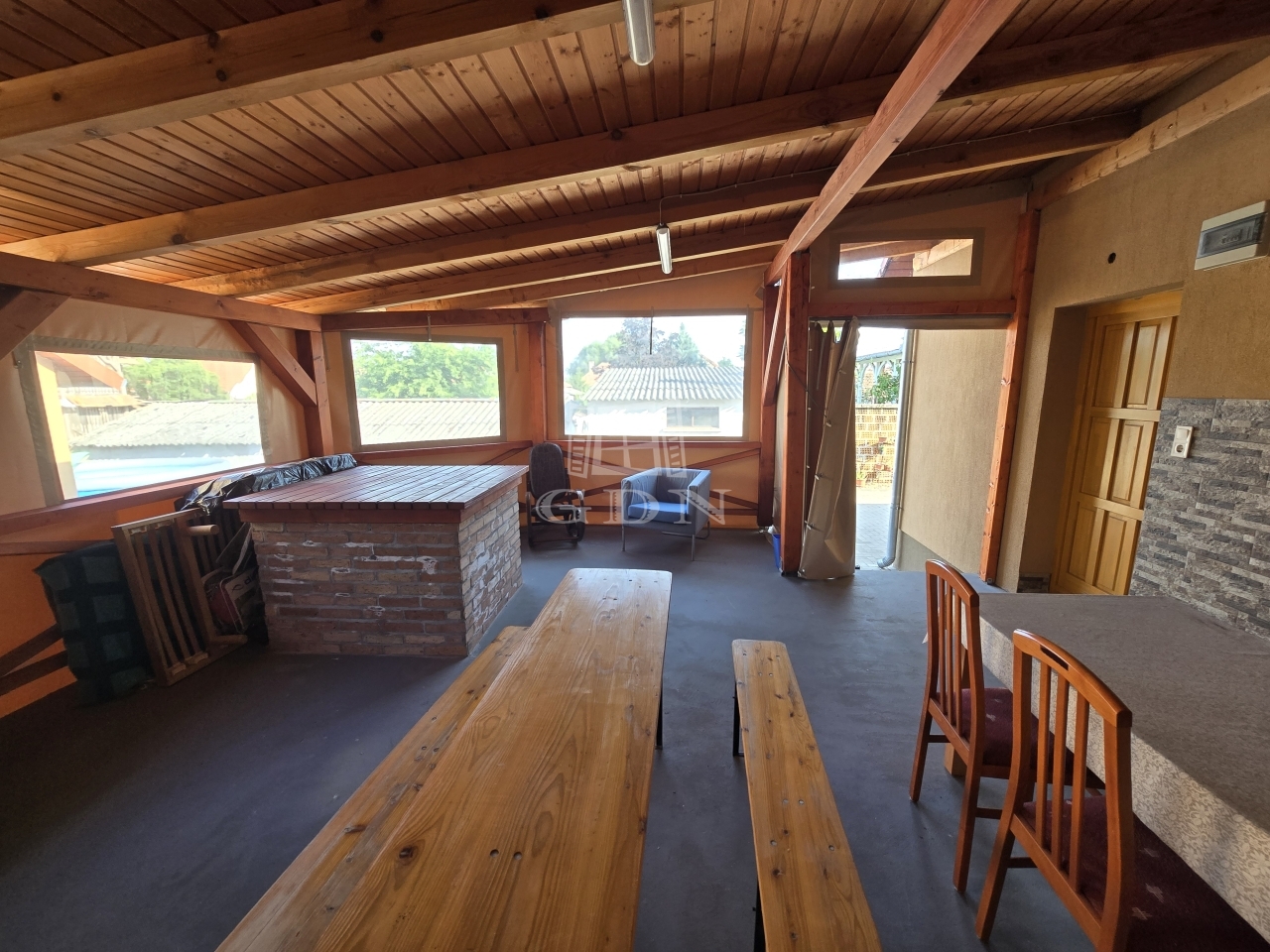 valamint egy 80 m²-es műhely az udvar hátsó részében, amely vállalkozásra, ipari célra vagy egyéni hobbira is kiválóan alkalmas.