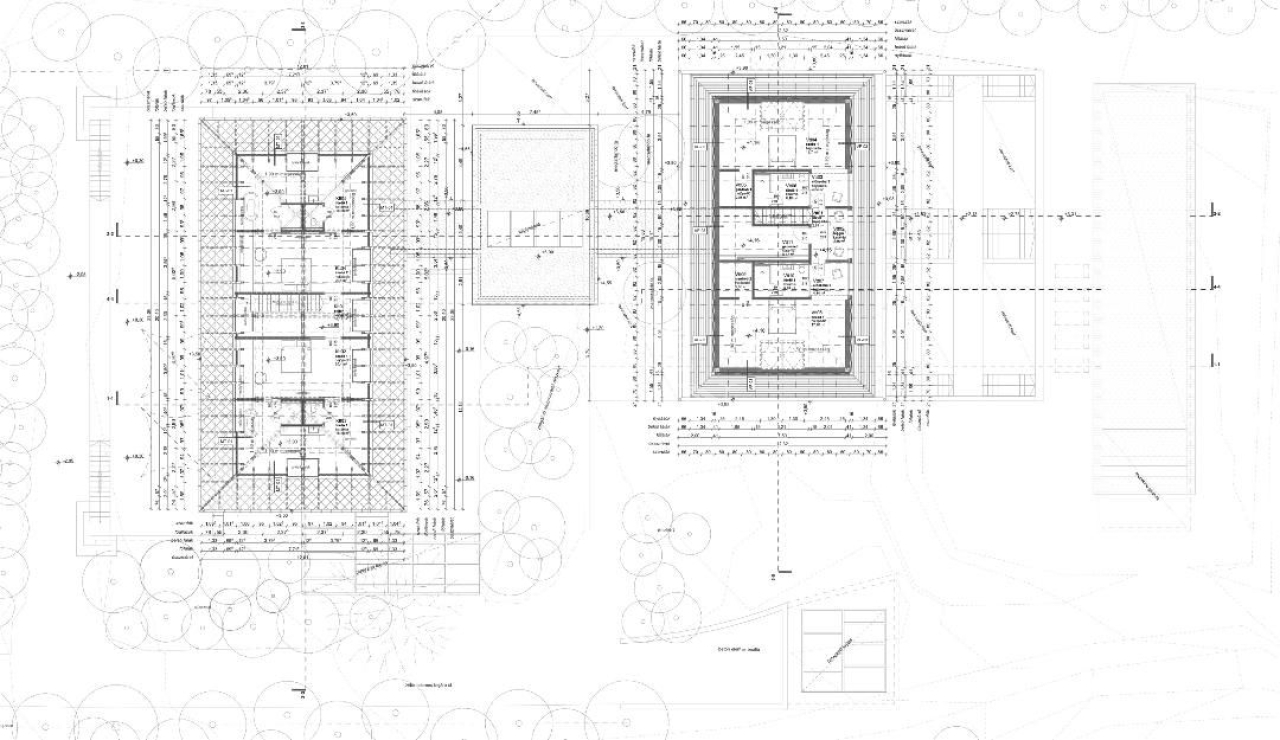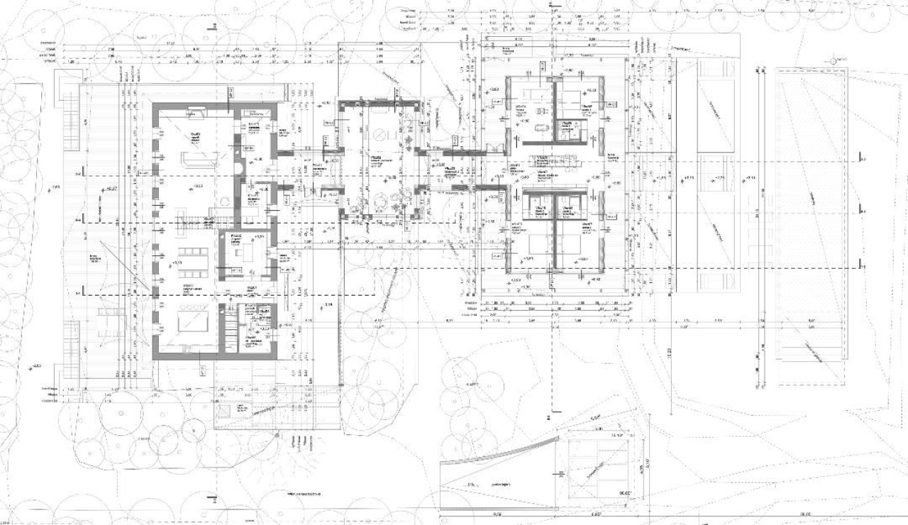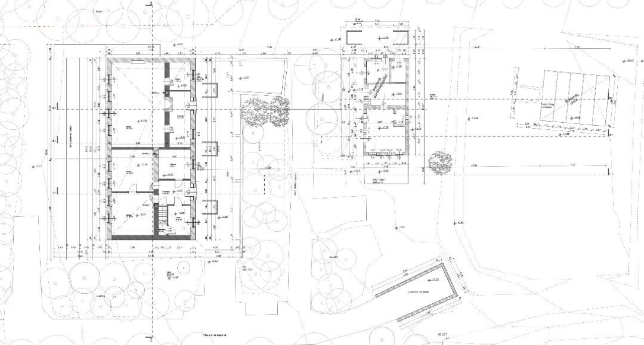 A meglévő kúria épületben földszinten kap helyet a nappali élet színtere. Előszoba, mosdó, háztartási helyiség(gépészet), két dolgozó szoba, konyha+étkező, a tetőtérbe felvezető lépcső, nappali, társalgó. A tetőtérben 2 hálószoba, gardrób és két fürdőszoba kialakítása az igény.