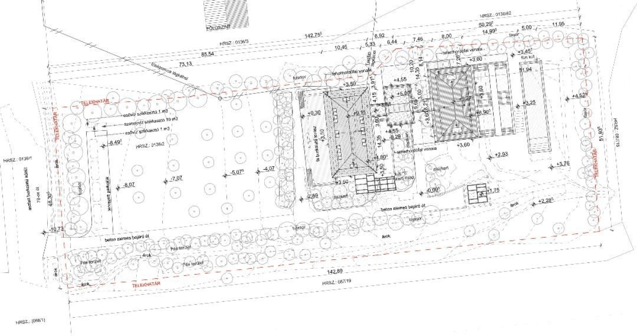 A terület lakott külterület, az Oltay uradalomhoz tartozott, eredeti rendeltetése szerint iskola épület volt. A telken jelenleg egy cca. 295 m 2 (pince+fsz.+tetőtér) lakóépület rendeltetésű kúria áll, amely a XIX. Század második felében épült, jelenleg helyi védelem alatt áll. A kúria teljes hosszában az előző tulaj egy nagyméretű teraszt alakított ki, melynek mérete: 6,3 m x 25 m. A házban jelenleg 2 külön bejáratú lakrész található, melyek egyenként 105-105 m 2 -esek. Az épület jelenlegi kamrájából egy pincelejárat lett kialakítva, amely egy 25 m 2 –es pincehelyiségbe vezet. Az ingatlan saját 18 m-es fúrt kúttal rendelkezik. A terület 3 x 32A vezérelt és 3 x 32A normál hálózati áramcsatlakozással lett kiépítve. A ház fűtése jelenleg hagyományos kályhákkal van megoldva.