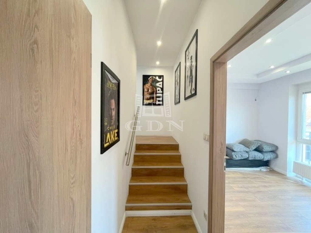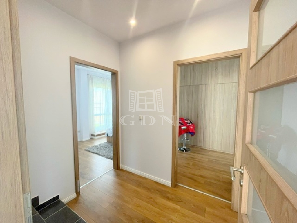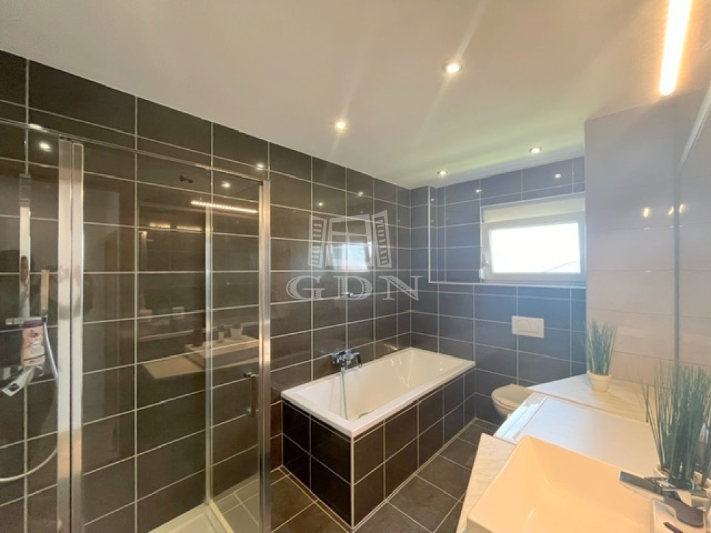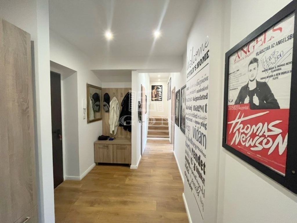 Az ablakok többrétegű műanyag nyílászárók, elektromos redőnnyel ellátottak. A hideg-meleg burkolatok új állapotnak örvendnek, a belső ajtók minőségi, tejüveggel ellátottak. A világításról beépített Spot lámpák gondoskodnak.