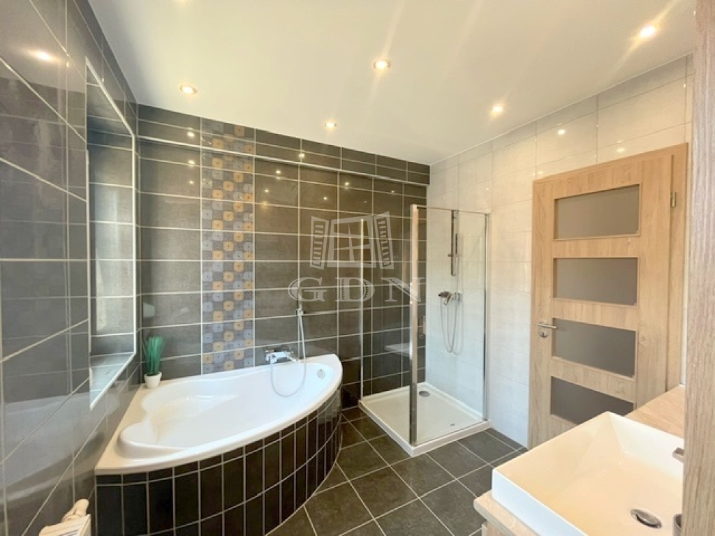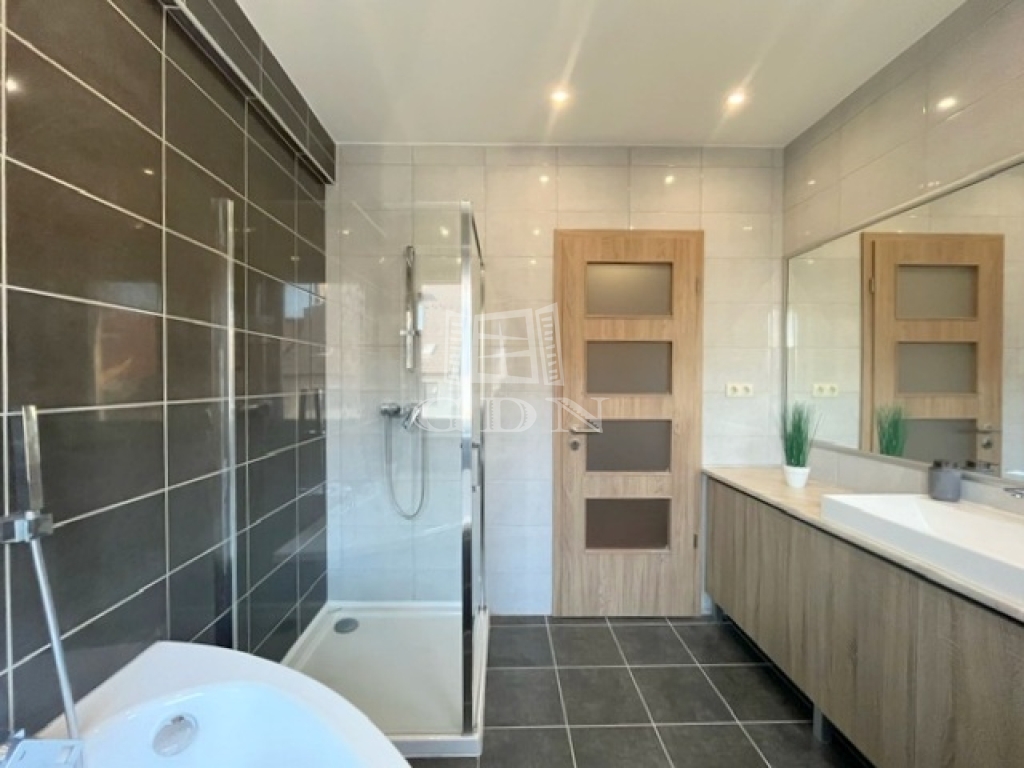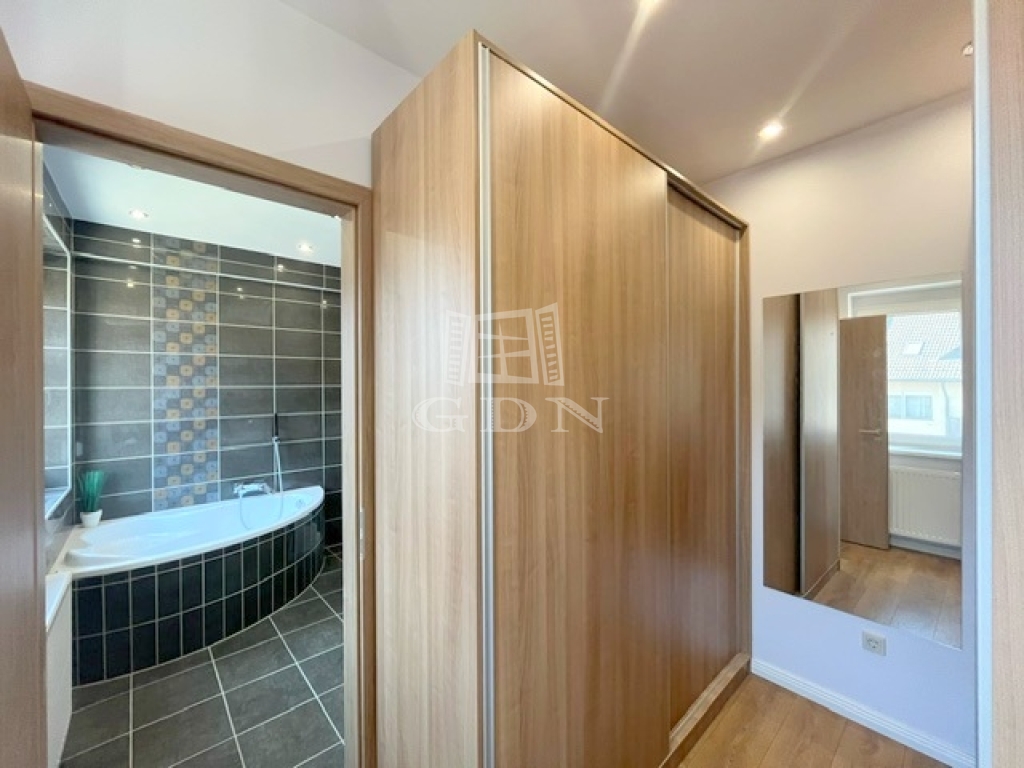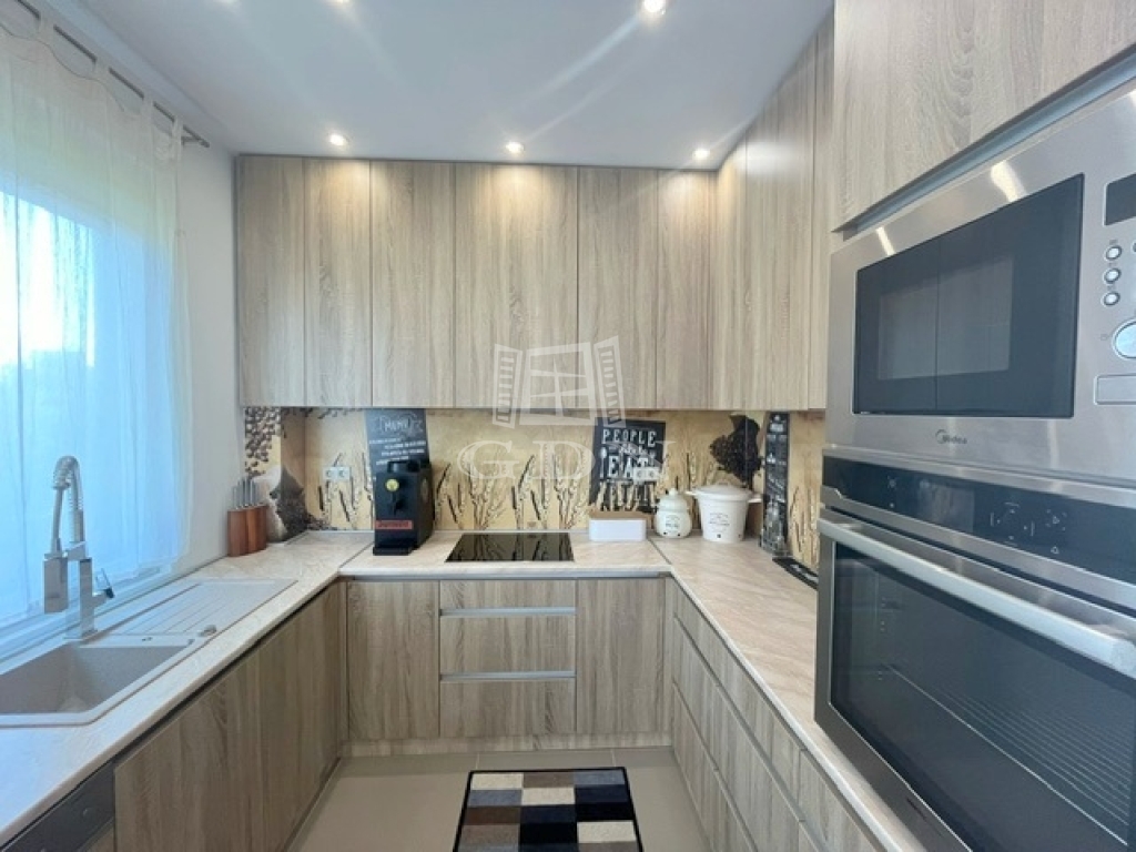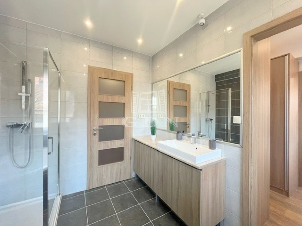 Az ablakok többrétegű műanyag nyílászárók, elektromos redőnnyel ellátottak. A hideg-meleg burkolatok új állapotnak örvendnek, a belső ajtók minőségi, tejüveggel ellátottak. A világításról beépített Spot lámpák gondoskodnak.