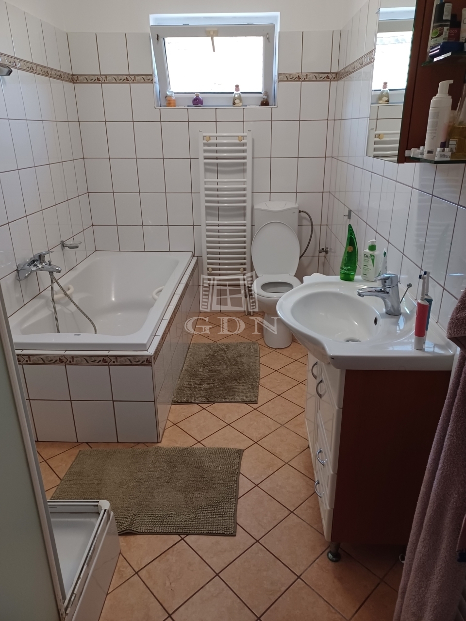 A ház tágas terekkel rendelkezik: nappali + 3 hálószoba, előszoba, közlekedő, étkező + konyha, kamra, gardrób, kádas és zuhanyzós fürdőszoba, külön wc. A ház mellett van a kazánház és a garázs, alatta egy 12 nm-es pince húzódik.