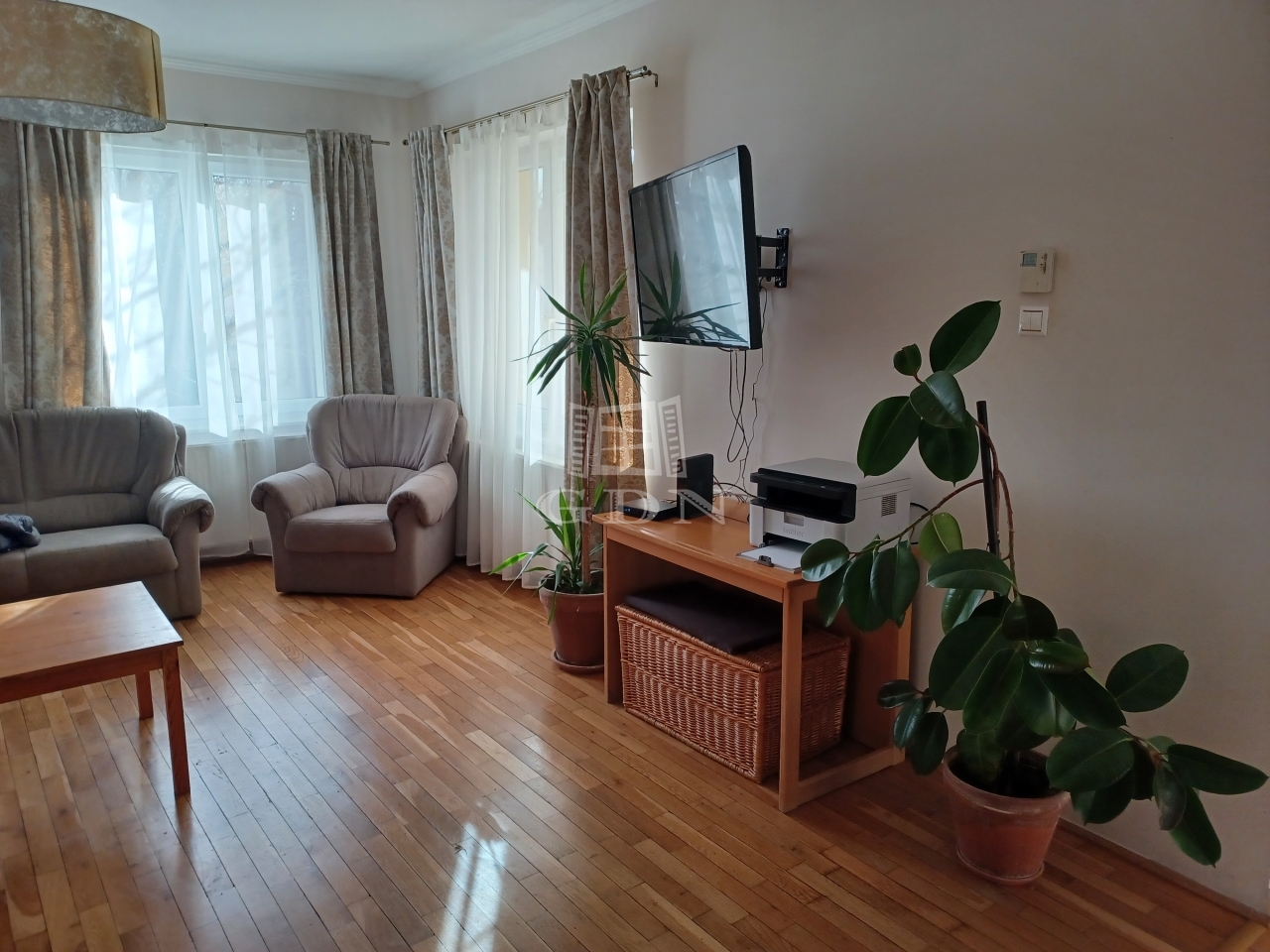 A szépen karbantartott kertben fúrt kút, biciklitároló, fatároló és kerti kiülő biztosítja a további kényelmet. Az udvaron három gépkocsi számára van beállási lehetőség, de az utcán is problémamentes a parkolás.