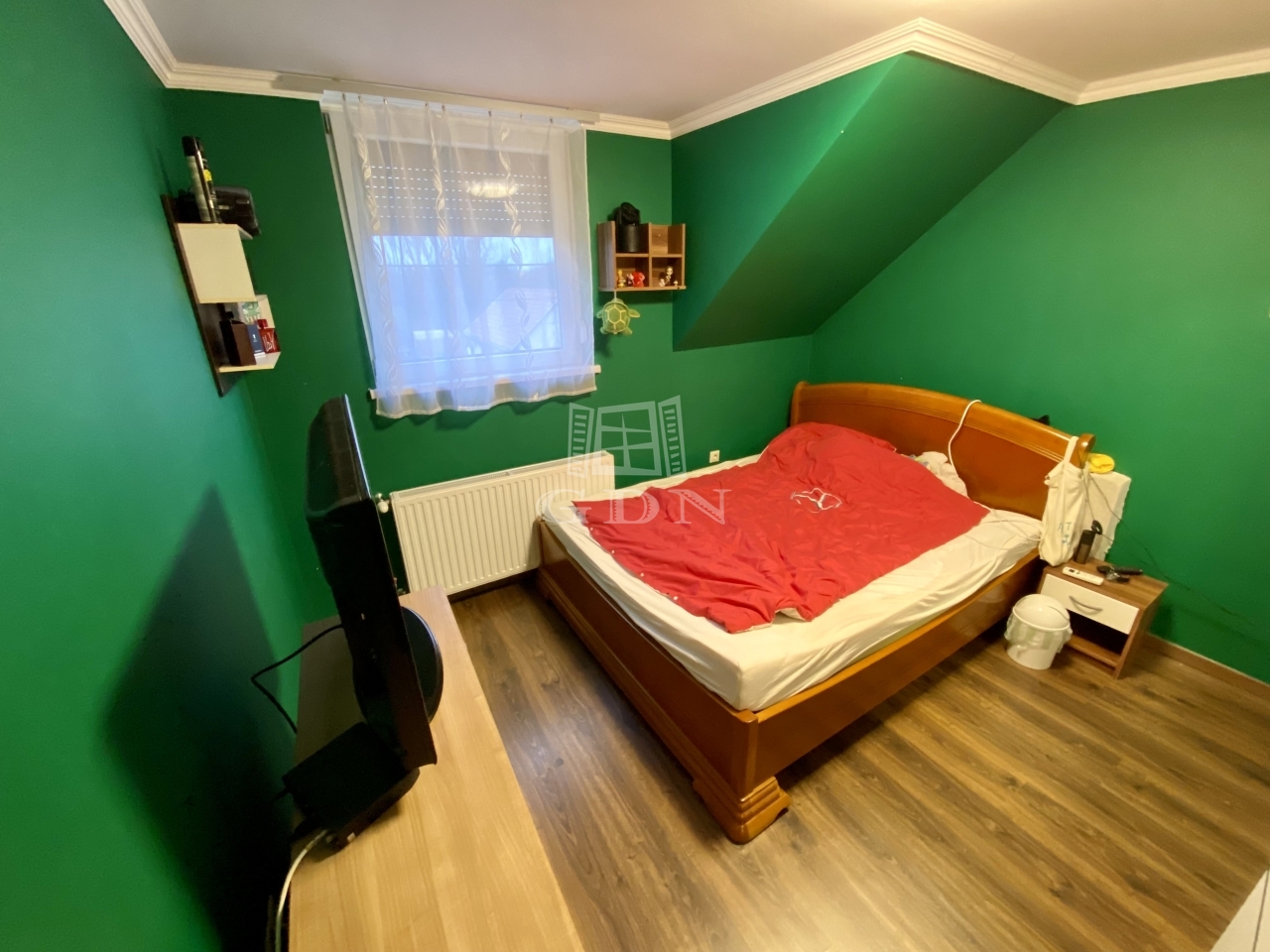 Az emelet három hálószobát kínál, így a privát terek jól elkülönülnek egymástól. A szinten egy zuhanyzós fürdő is található, valamint egy praktikus gardrób, amely a mindennapokat teszi kényelmesebbé.