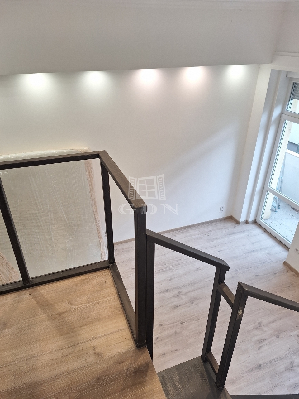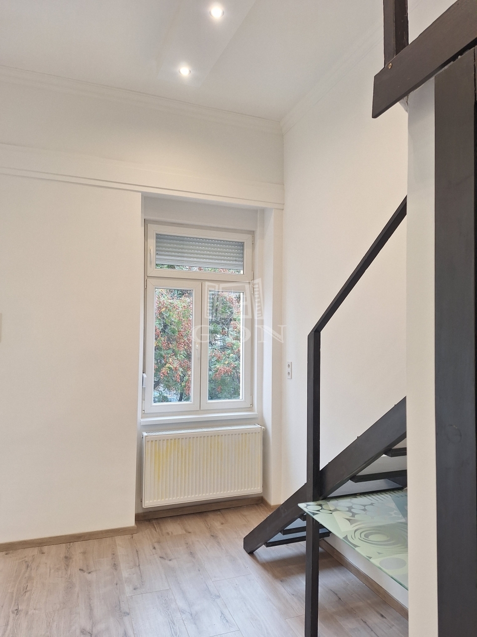 A 33 m²-es garzon galériázott, erkélyes, gépesített konyhával – tökéletes kis városi kuckó.