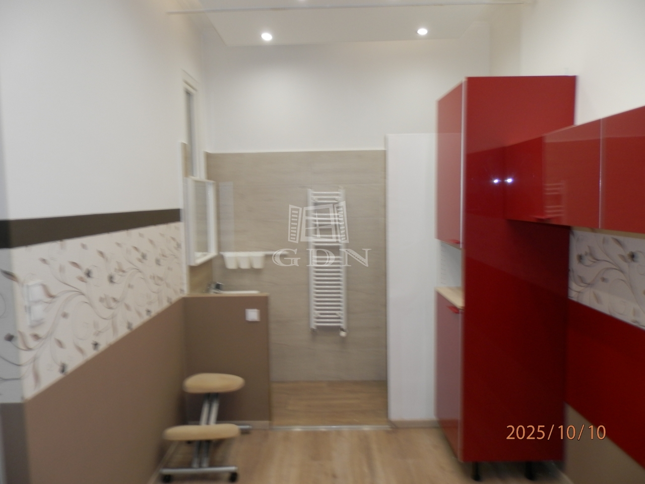 A 58 m²-es lakás tágas, világos, két fürdőszobás, akár két külön bérlő számára is ideális.