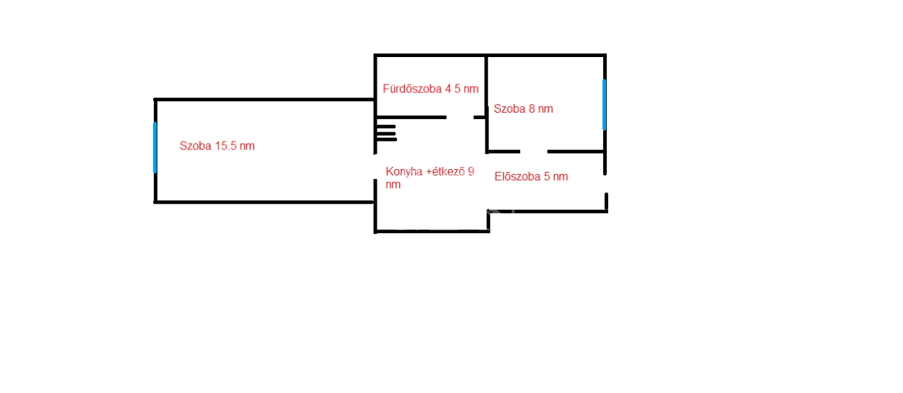 A konyha-étkezőből nyílik a 15.5 nm-es nagyobb szoba, kilátása utcai.