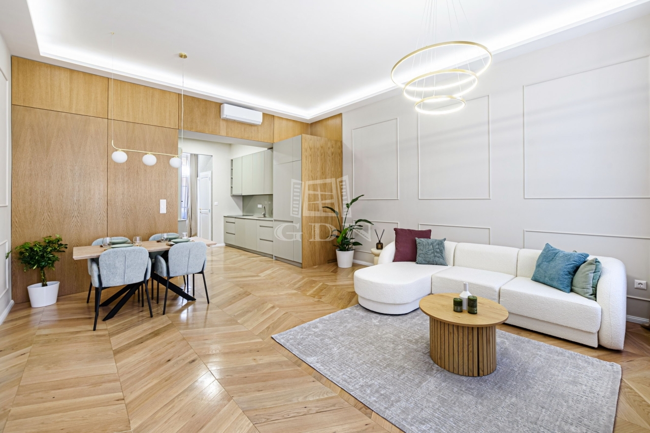 In one of Budapest’s most prestigious streets, Zoltán Street, just steps from the Parliament and Szabadság Square, a bright, 71 sqm, fully renovated and furnished, double-comfort 3-room apartment is for sale on the top (3rd) floor of a well-kept elevator building.