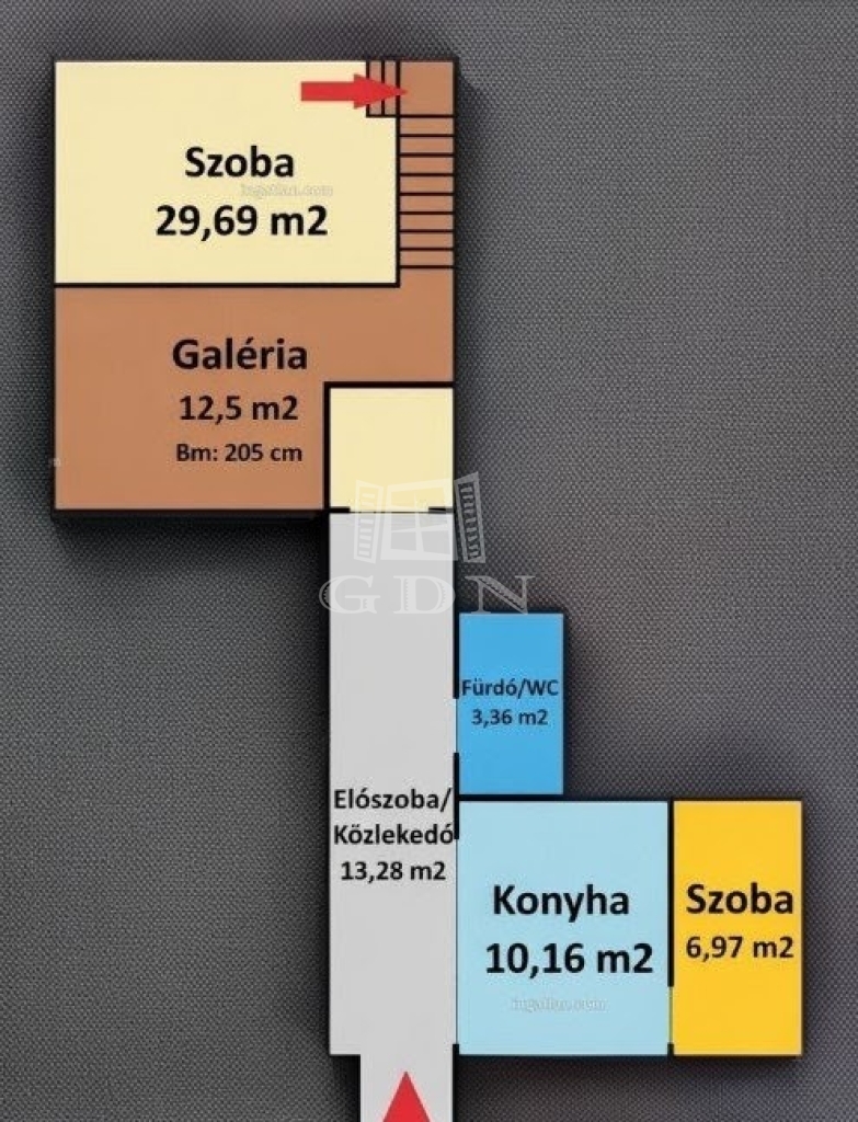 ✅ Galériás nappali (29,69 m²), galéria mérete: 12,5 m² (galéria alatti belmagasság: 2,15 m, feletti belmagasság: 2,10 m)