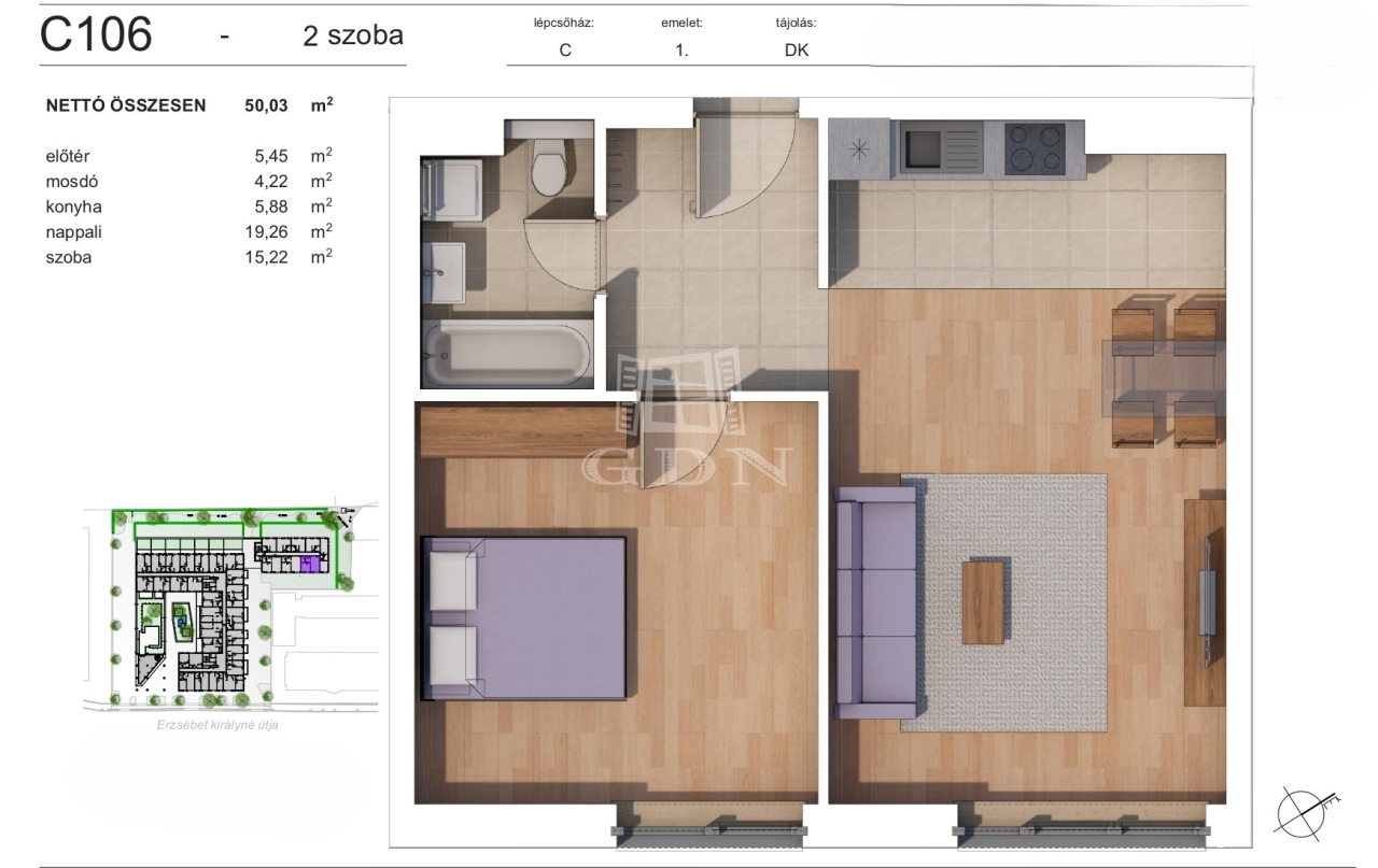 Квартира (кирпичная) Продается Budapest XIV. mикрорайон - Erzsébet Residence C106
