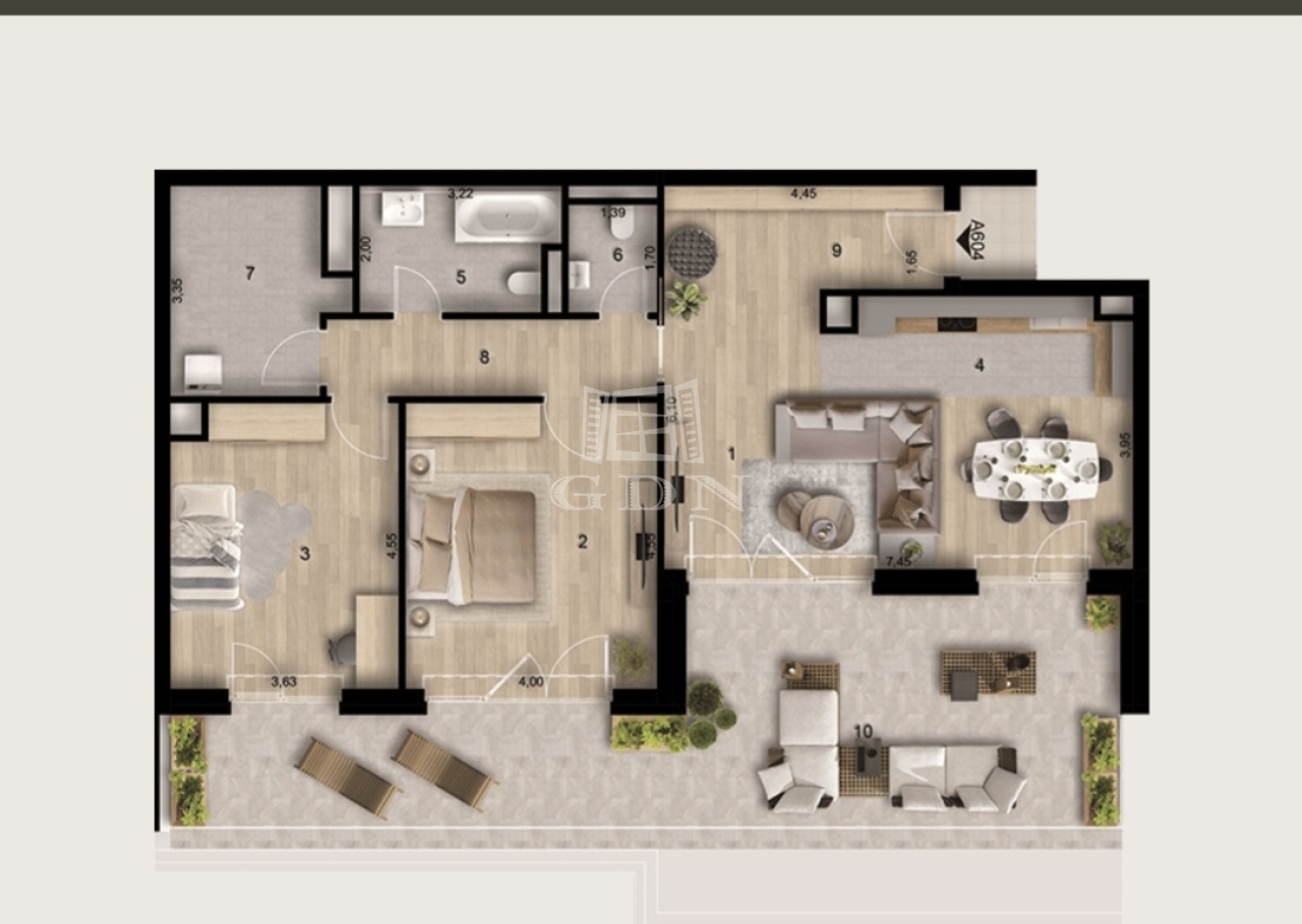 A 6. emeleti új építésű otthon 97,82 m²-en ad teret a nyugalomnak, a harmóniának és annak, hogy végre kényelmesen élhess. A nappaliból kilépve 42,85 m²-es terasz vár — reggeli kávéhoz, esti beszélgetésekhez, vagy egyszerűen csak ahhoz, hogy kiülj és fellélegezz a város felett.