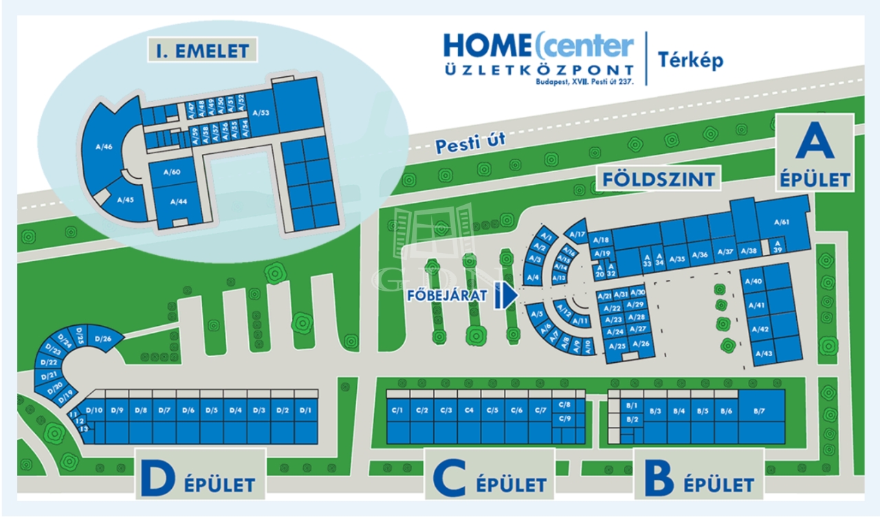 Center Üzletközpont földszintjén közvetlen utcai bejárattal rendelkező 168 m2 üzlethelységet.