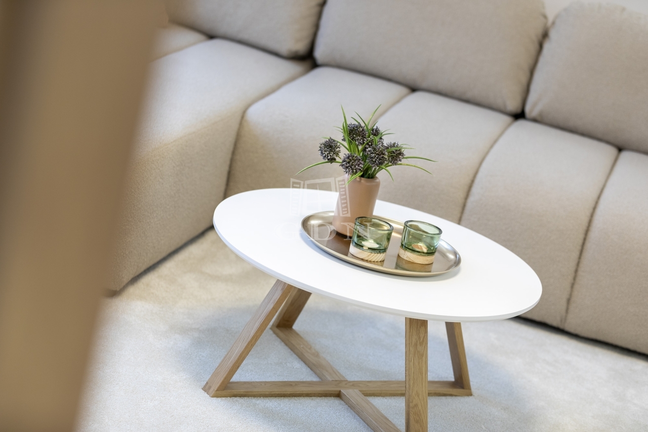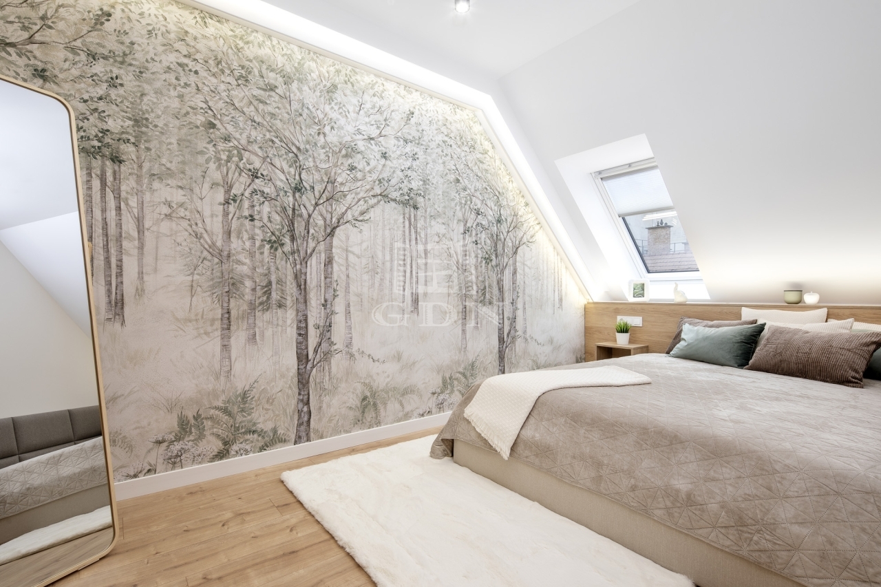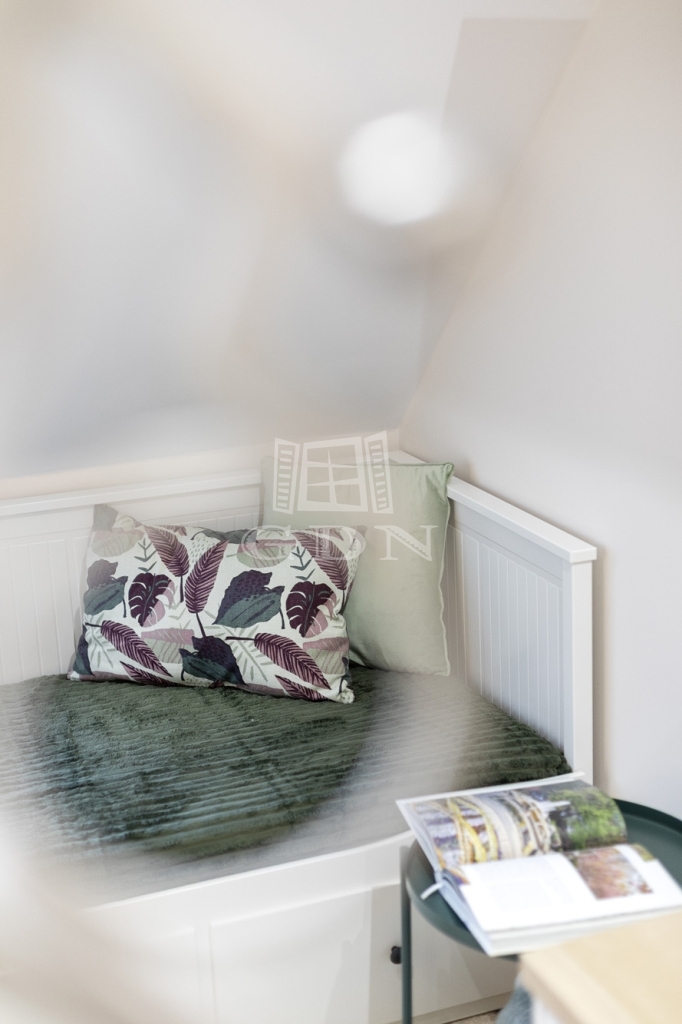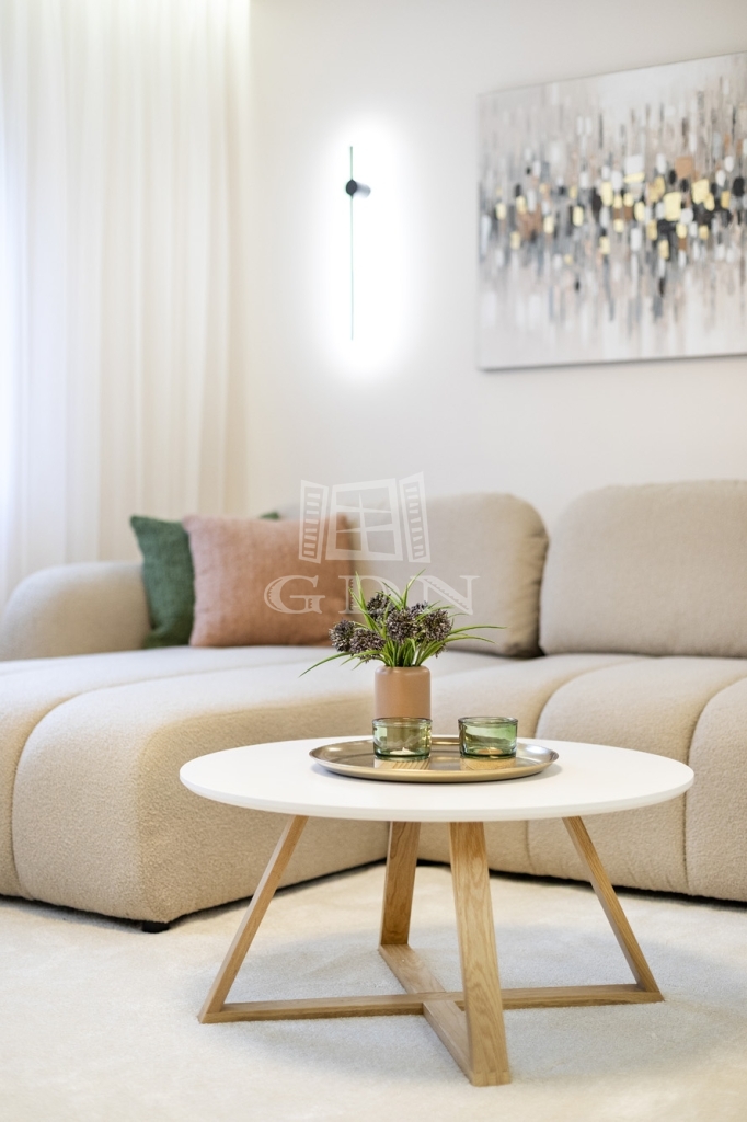 • minden bútor, textil és berendezés új, garanciális, a vételár része