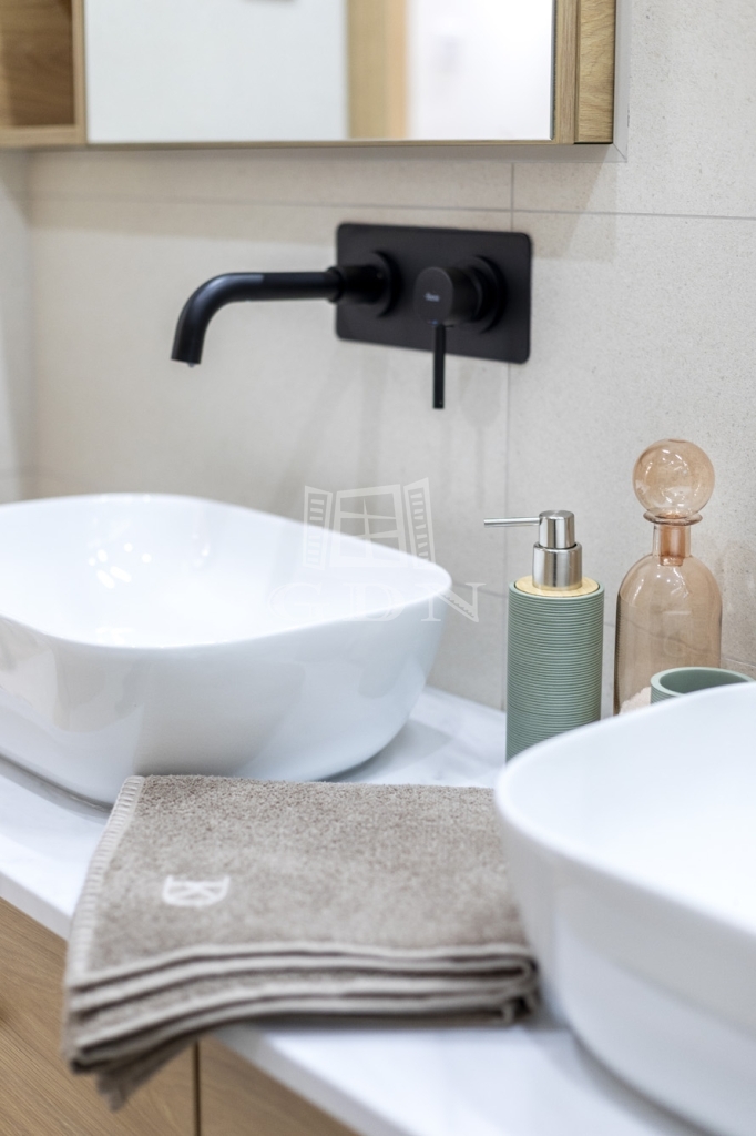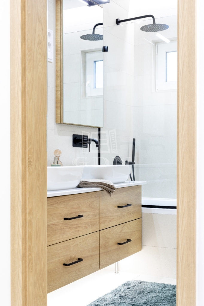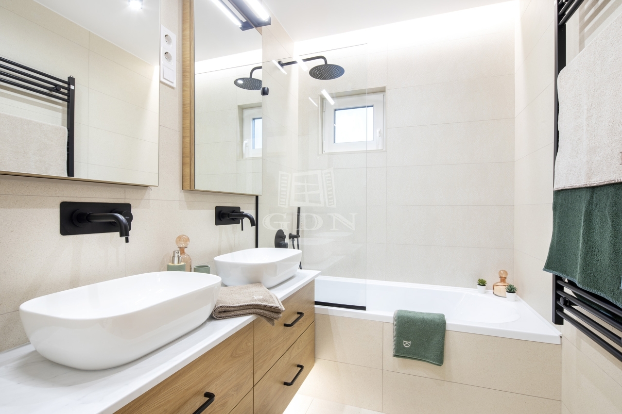 • új, kádas fürdő dupla mosdóval