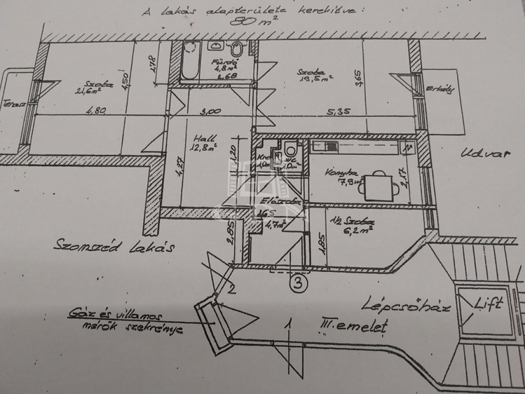 Az eladó ingatlan az V. kerület frekventált részén a Szalay utcában található.78 nm-es, térelosztása remek, 2 tágas szoba, félszoba, hall, étkezős konyha, fürdőszoba, kamra, külön nyíló WC.