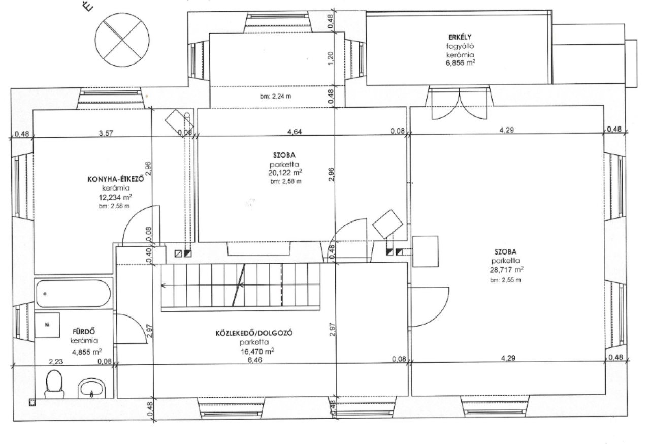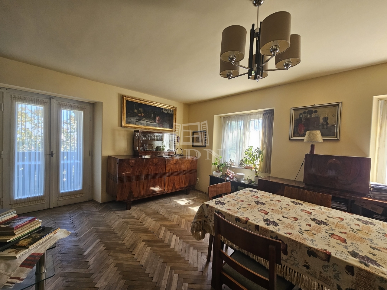 A 195 m2-es lakás két szinten helyezkedik el, ami jelenleg két különálló és külön bejárattal rendelkező lakásra van megosztva, földszint 95 m2 – első emelet 100 m2 + 500 m2 kertrész.