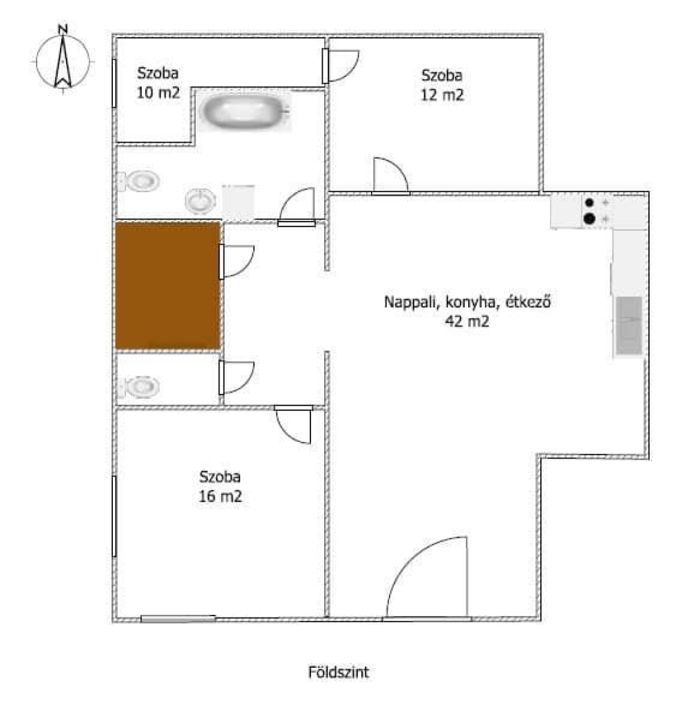 Helyiségek elosztása: