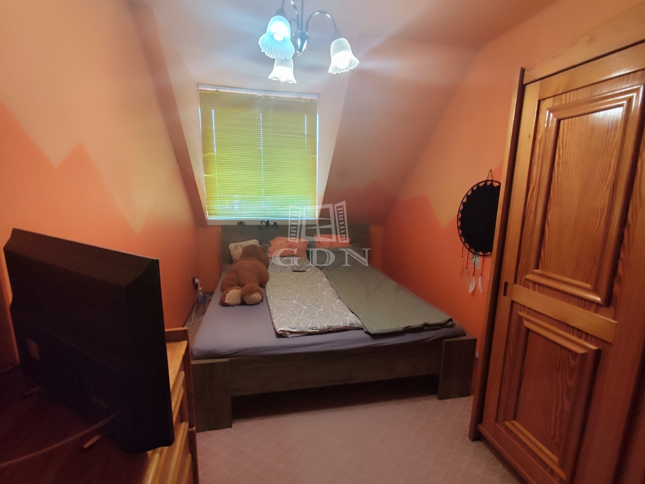 Emelet: két kényelmes hálószoba, egy félszoba, valamint egy fürdőszoba WC-vel (egy helyiségben)