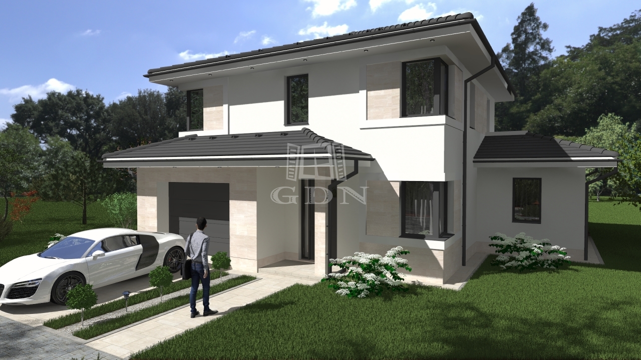 A ház nettó 166,21 m² lakótérrel és 21,59 m²-es garázzsal rendelkezik, kétszintes kialakítású, modern megjelenésű és átgondolt alaprajzú.