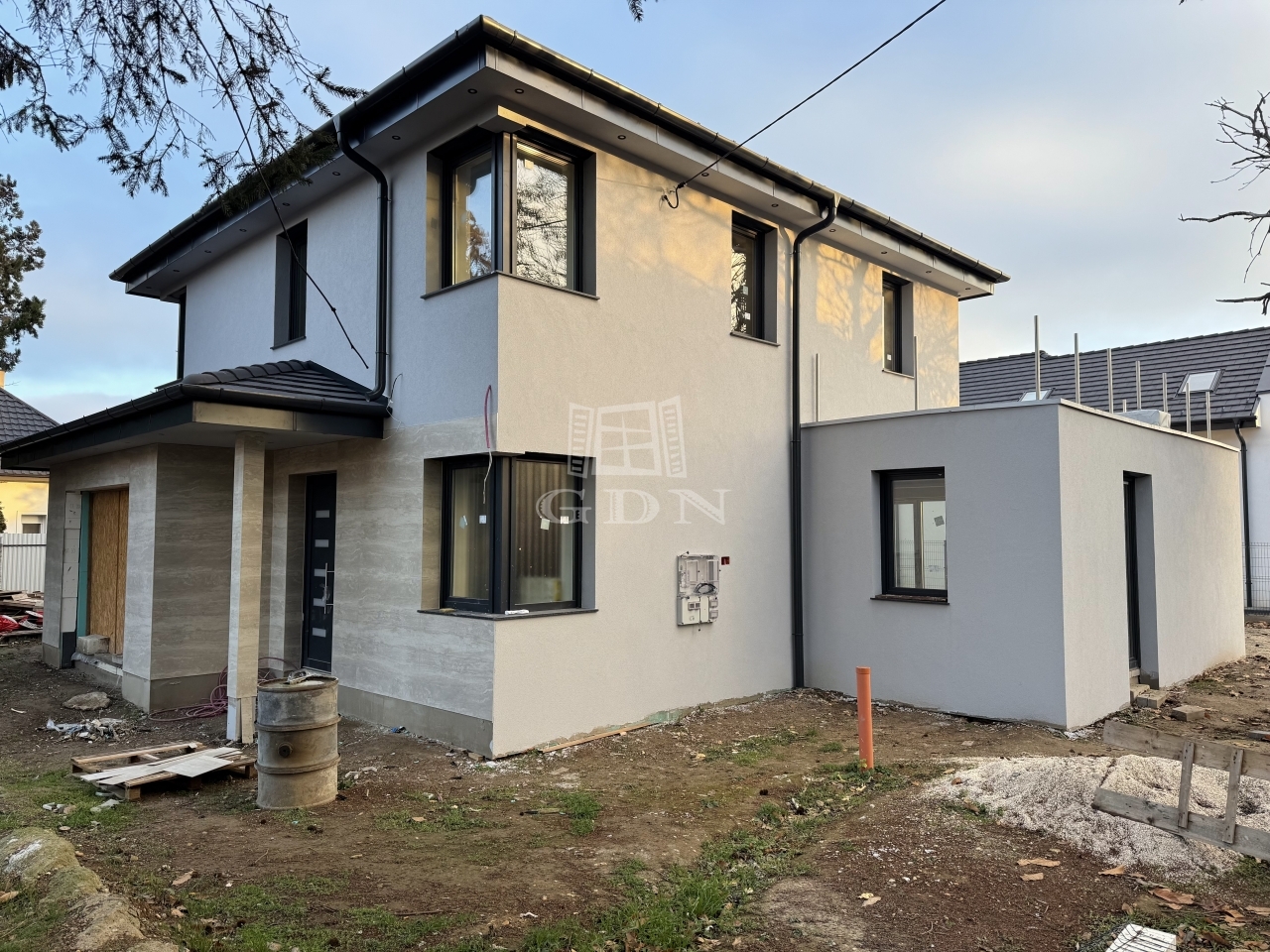 Az ingatlan elkészült, a teljes szerkezet, gépészet és külső környezet kialakítása megtörtént, már csak a burkolatok, szaniterek és beltéri ajtók kiválasztása és beépítése hiányzik, így az új tulajdonos saját ízlésére szabhatja a belső tereket.