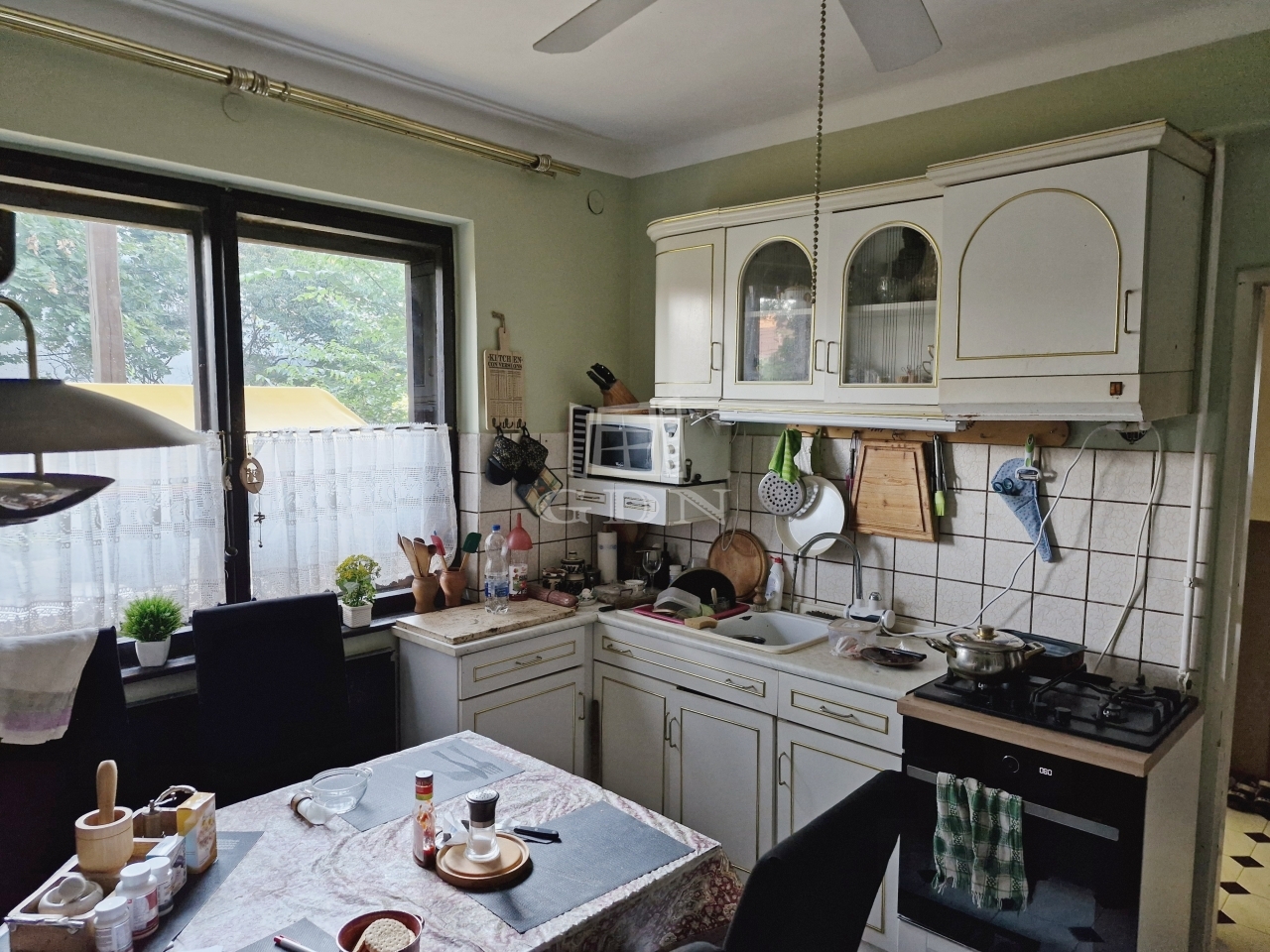 A lakóingatlan kilátása kertre néző, ami nyugodt és zöld környezetet biztosít.