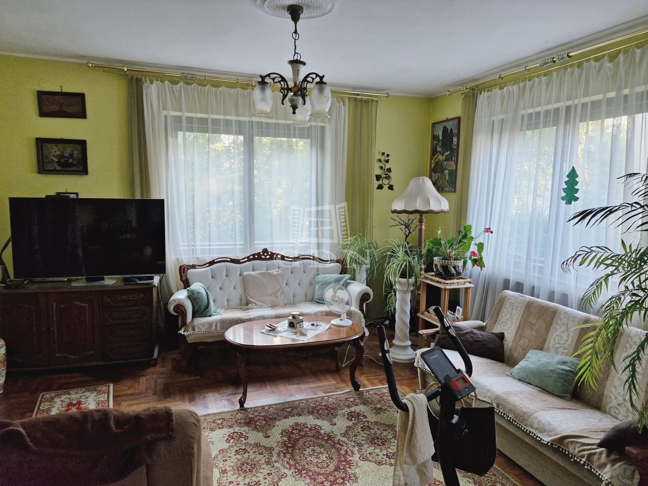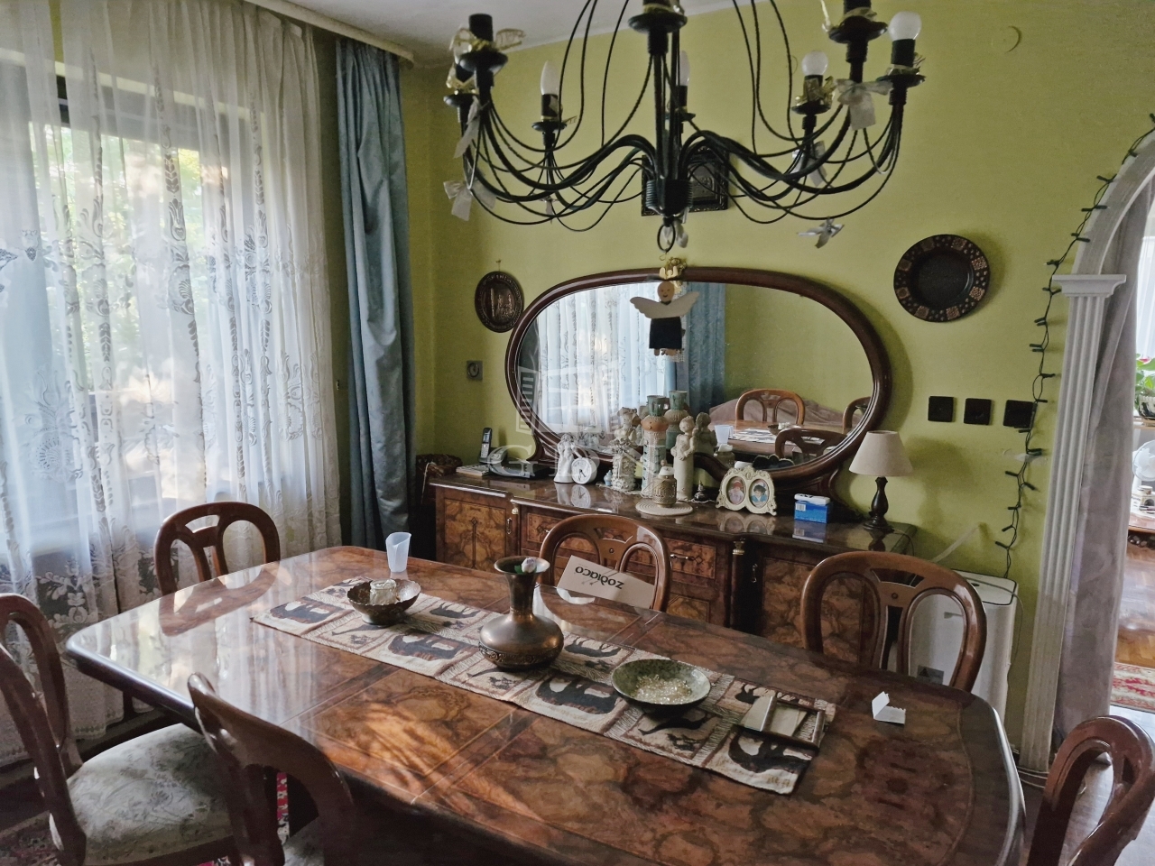 A házban 2 nappali, 2 konyha, spájz, 2 ebédlő, 6 szoba, 3 fürdőszoba, 4 wc található. 3 külön bejárattal rendelkezik.