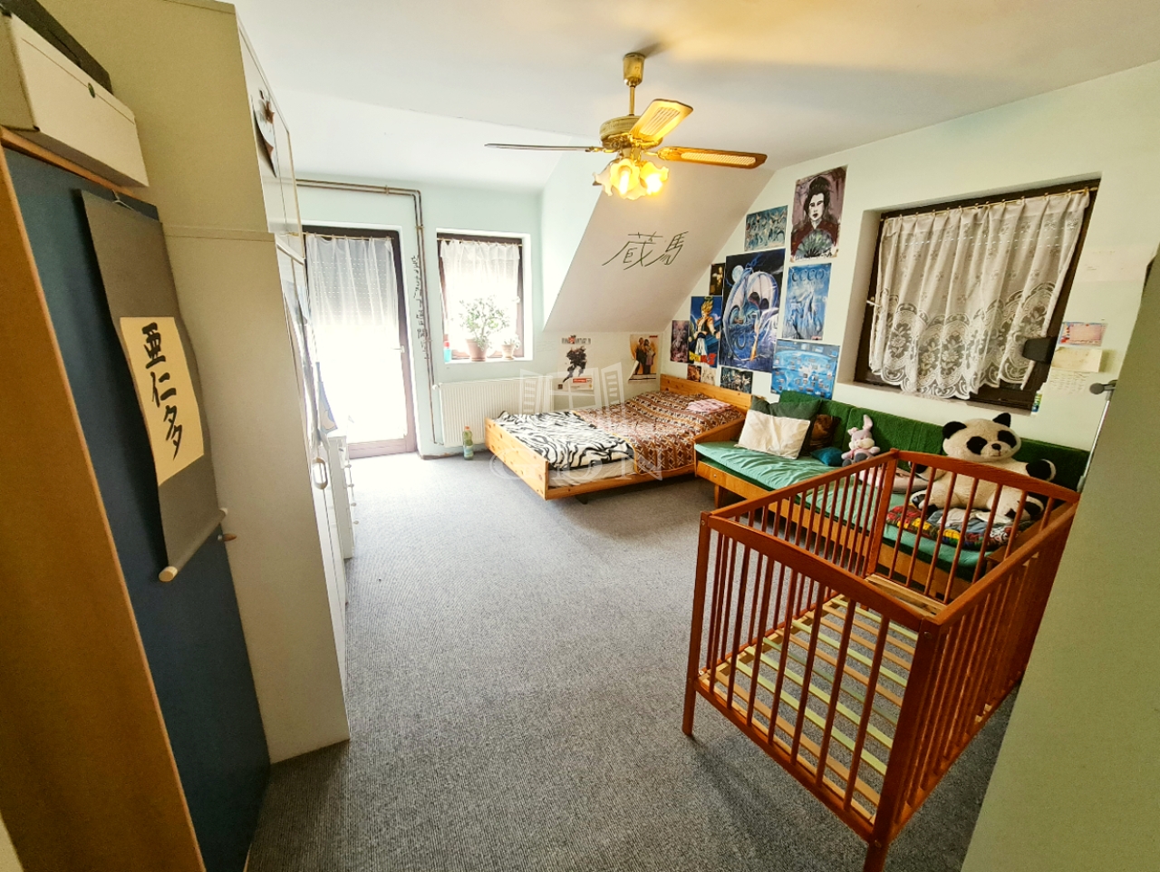 - A tetőtér jelenleg konditeremként funkcionál, kétoldalt további tárolóhelyiségekkel.