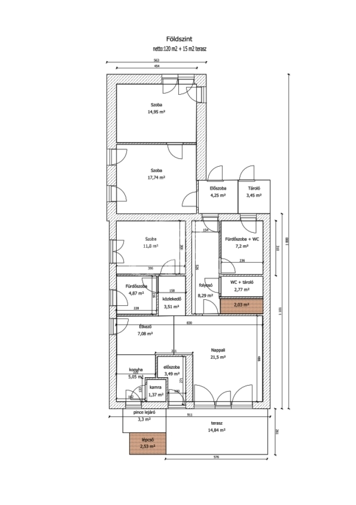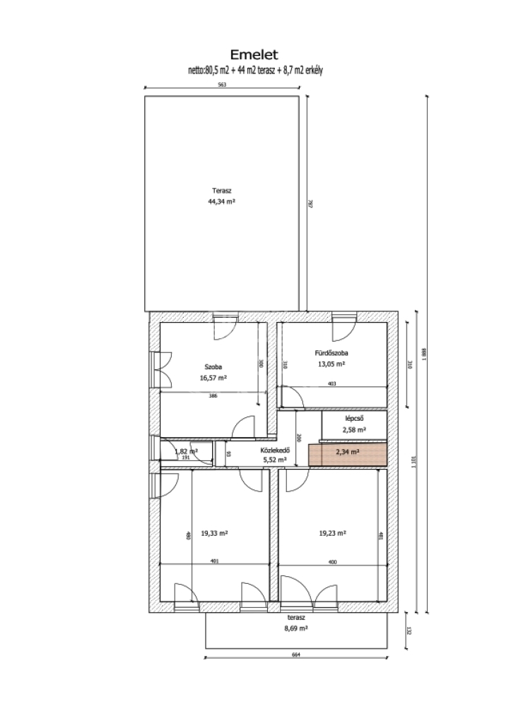 - Az emeletet tömör falépcső köti össze a földszinttel.