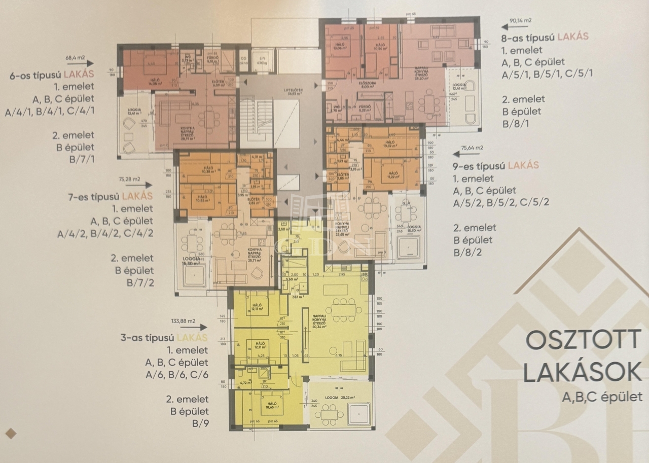 - Minden lakás 3 hálószobát, 2 fürdőt, egy vendég WC-t, valamint amerikai konyhás nappalit és