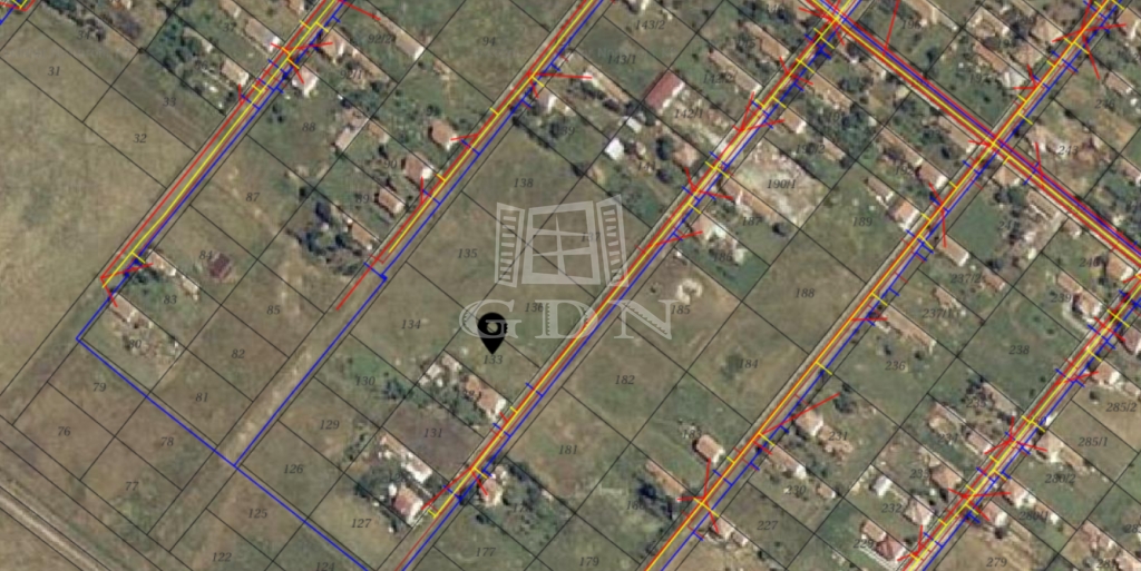 A víz a telken belül található, a gáz, villany, szennyvíz közmű az utcában.