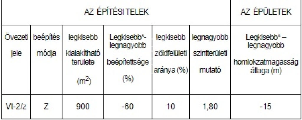 Övezeti besorolás : Vt-2/z