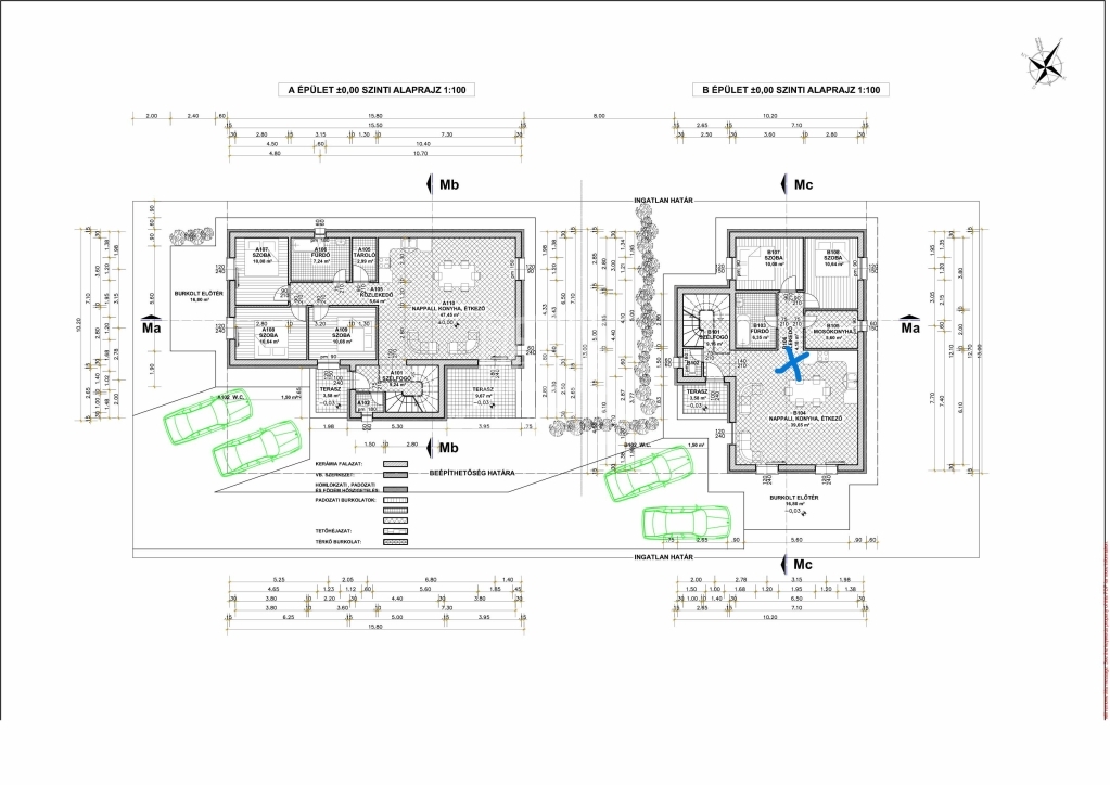 Földszintsz.: 87 nm, 4 szoba,10 + 4 nm terasz.
