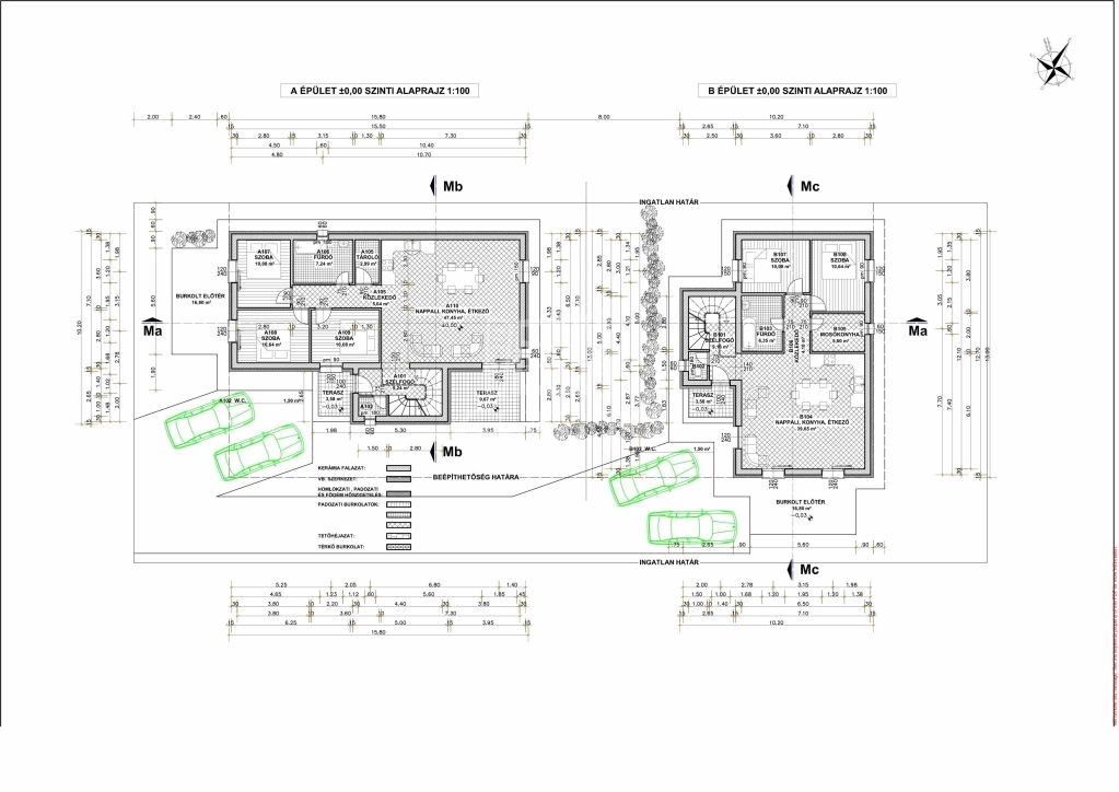 Földszintsz.: 107 nm, 4 szoba,10 + 4 nm terasz.