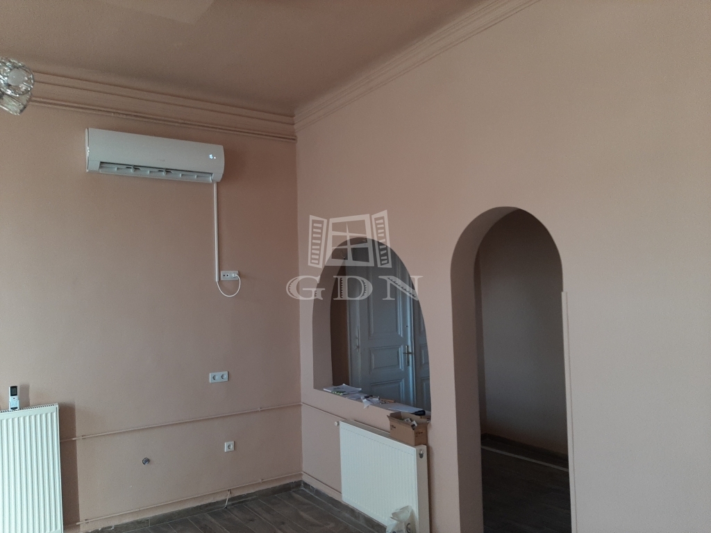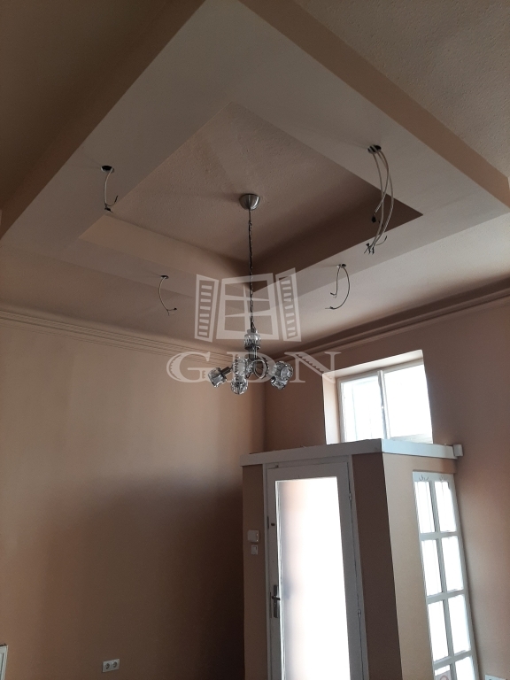 A kisebb rész, mely 42 m2 alapterületű, teljesen felújított, tulajdonképpen egy garzon lakásnak felel meg.