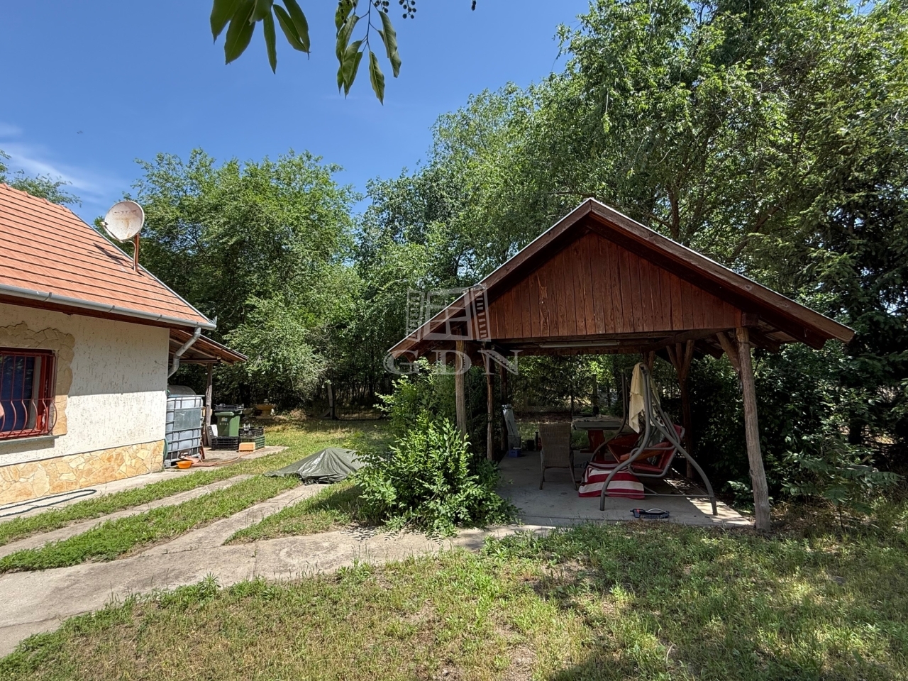 Jelenleg garázsként nyilvántartott másik 55 nm épület lakóépületé való átalakítása folyamatban van. A telken kerti kiülő, betonozott autóbeálló, fedett teraszok, melléképületek, tárolók találhatóak még.